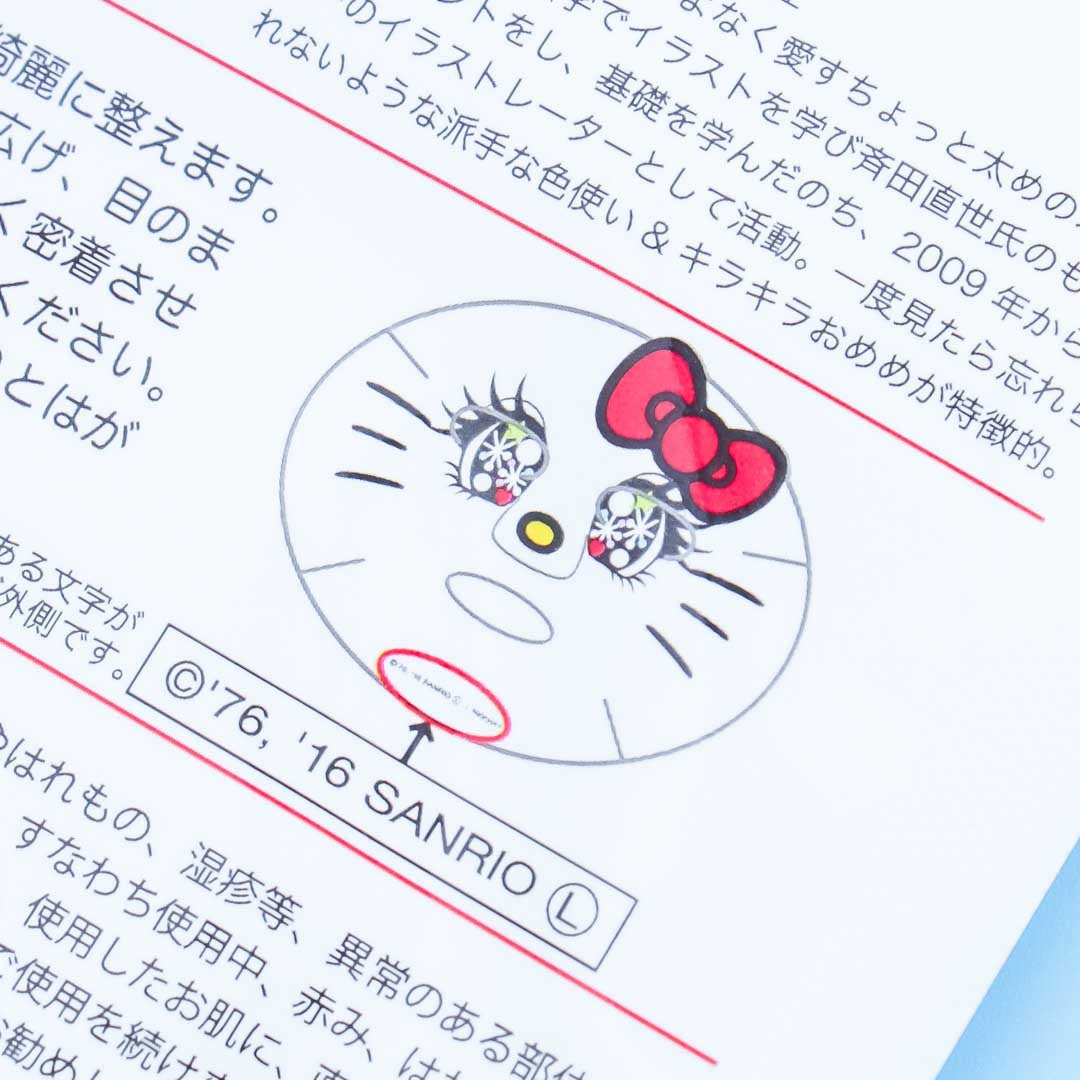 • A super kawaii sheet mask pack featuring Hello Kitty with shimmering eyes