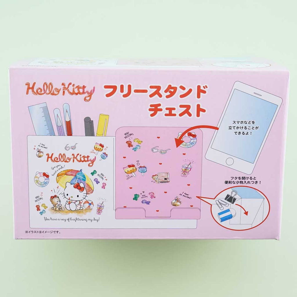 A cute phone stand and pen organizer featuring Hello Kitty, Tiny Chum, and summertime sweets