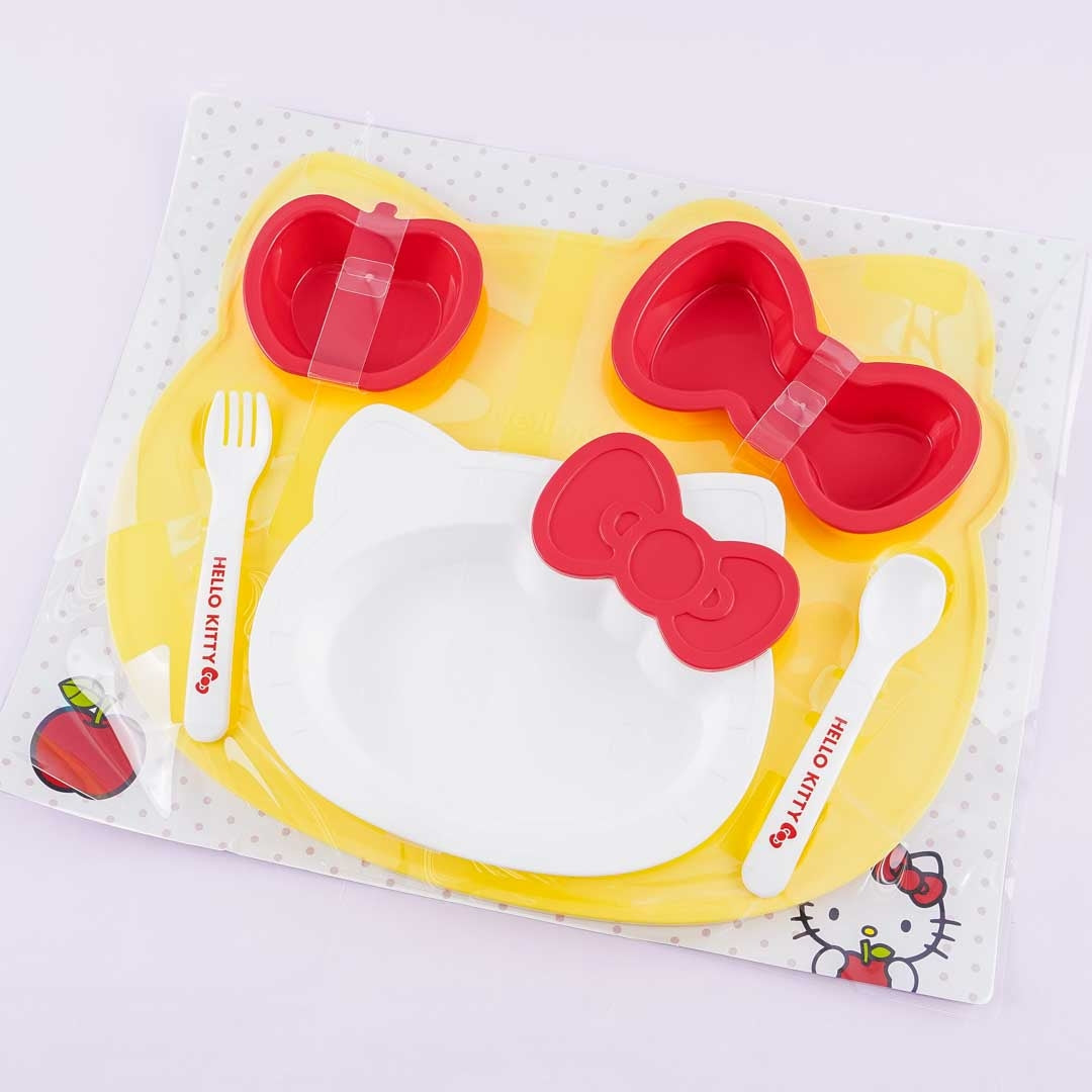 • Includes: Hello Kitty plate, spoon, fork, ribbon plate, and an apple bowl