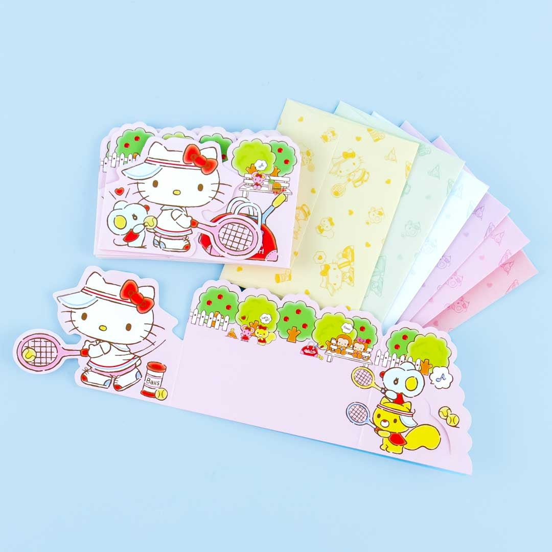 Send handwritten messages to your loved ones with these mini die-cut greeting cards featuring Hello Kitty and friends playing sports! The set includes mini die-cut greeting cards, matching kawaii envelopes, and stickers.