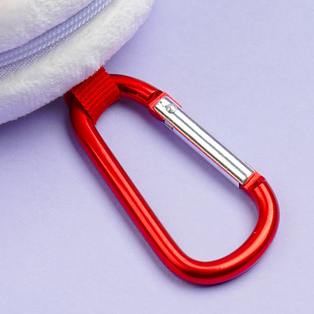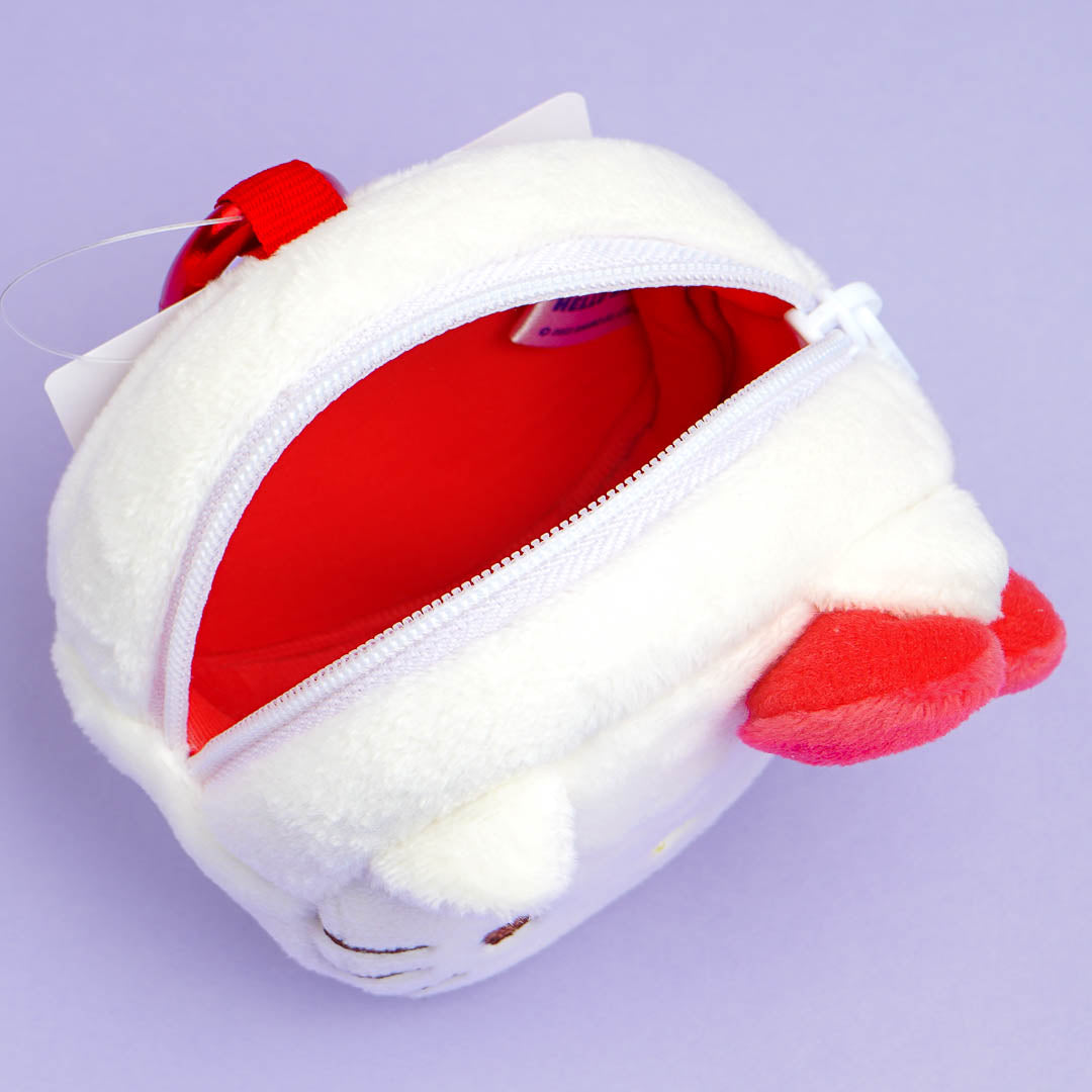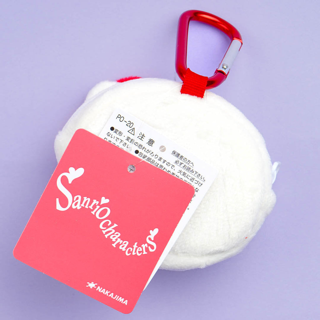 This cute Hello Kitty plushie pouch is super nice to touch! Use it to store candy, charms, and other small items. It comes with a metal carabiner so you can attach it to your favorite bag.