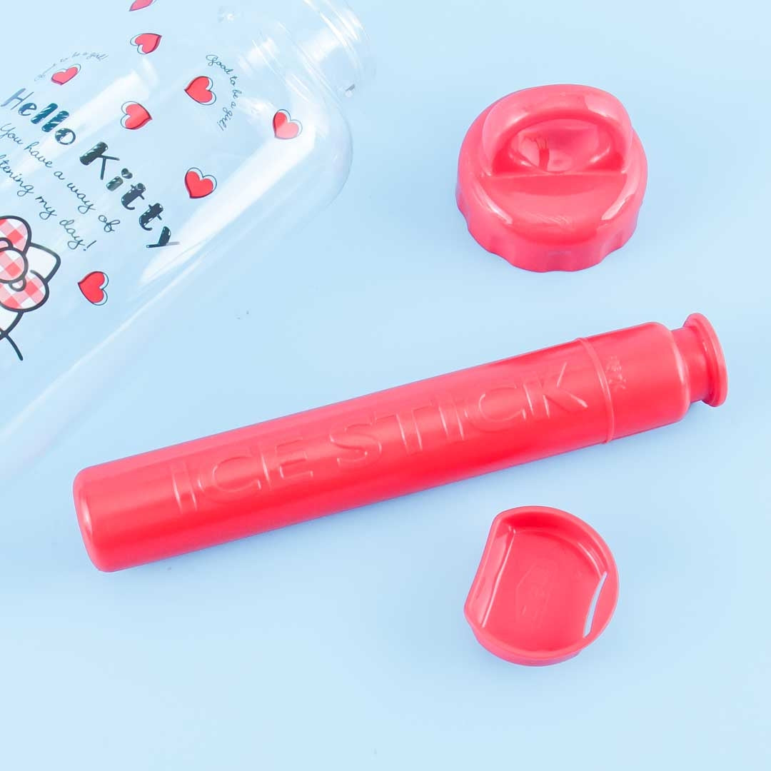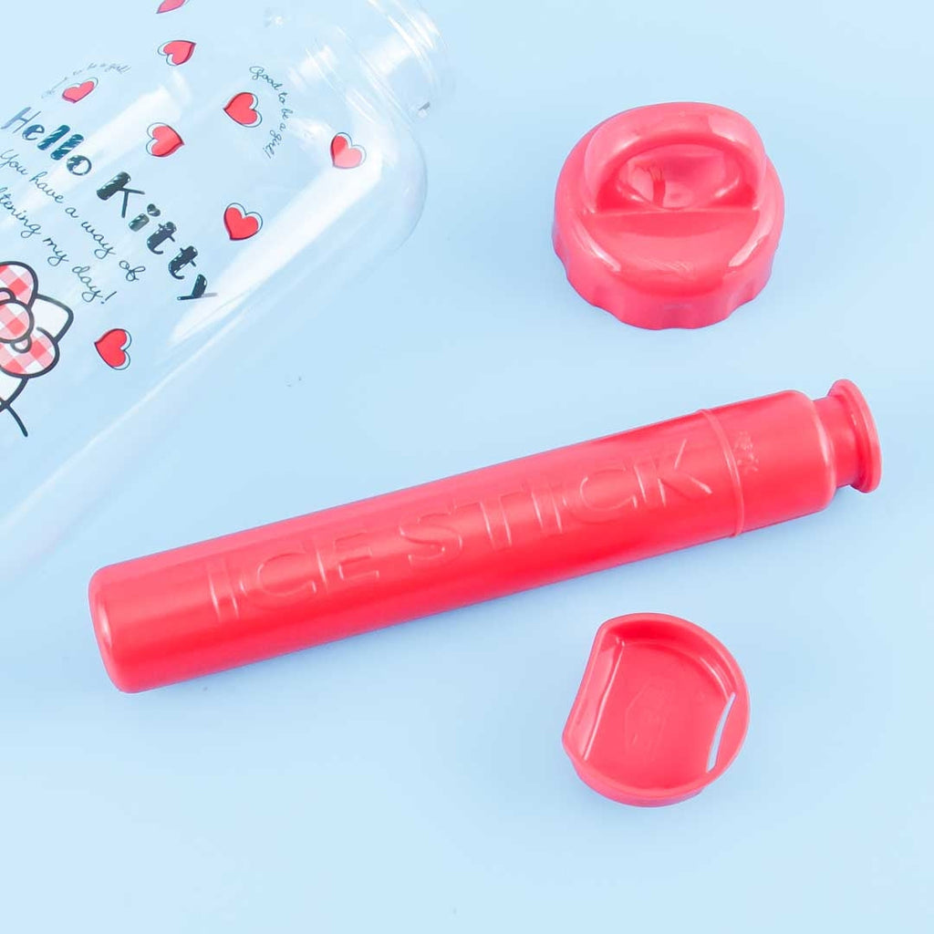 This super kawaii water bottle features Hello Kitty with red hearts in the background! It includes an insulation stick in the middle that helps you keep your drinks cold. All you have to do is put water into the storage stick, place it in the freezer for ten hours or more, and then insert it inside the bottle! Hot drinks are not recommended for this water bottle.