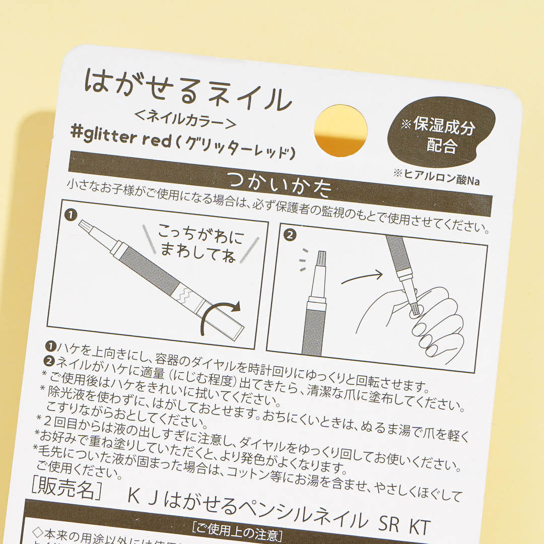 Add a dose of cuteness by turning your nails sparkly red in a flash! The twist tube pen is easy to use and has kawaii prints of Hello Kitty. To remove the polish, just use hot water.