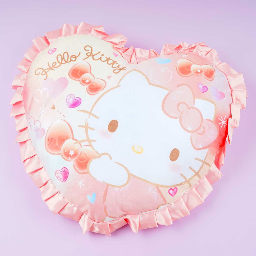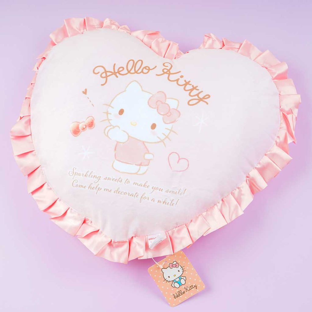 This kawaii heart-shaped cushion is perfect for Hello Kitty lovers! It features a cute illustration of Hello Kitty with prints of ribbons and hearts. You can use it as a pillow or as a display for your living room!