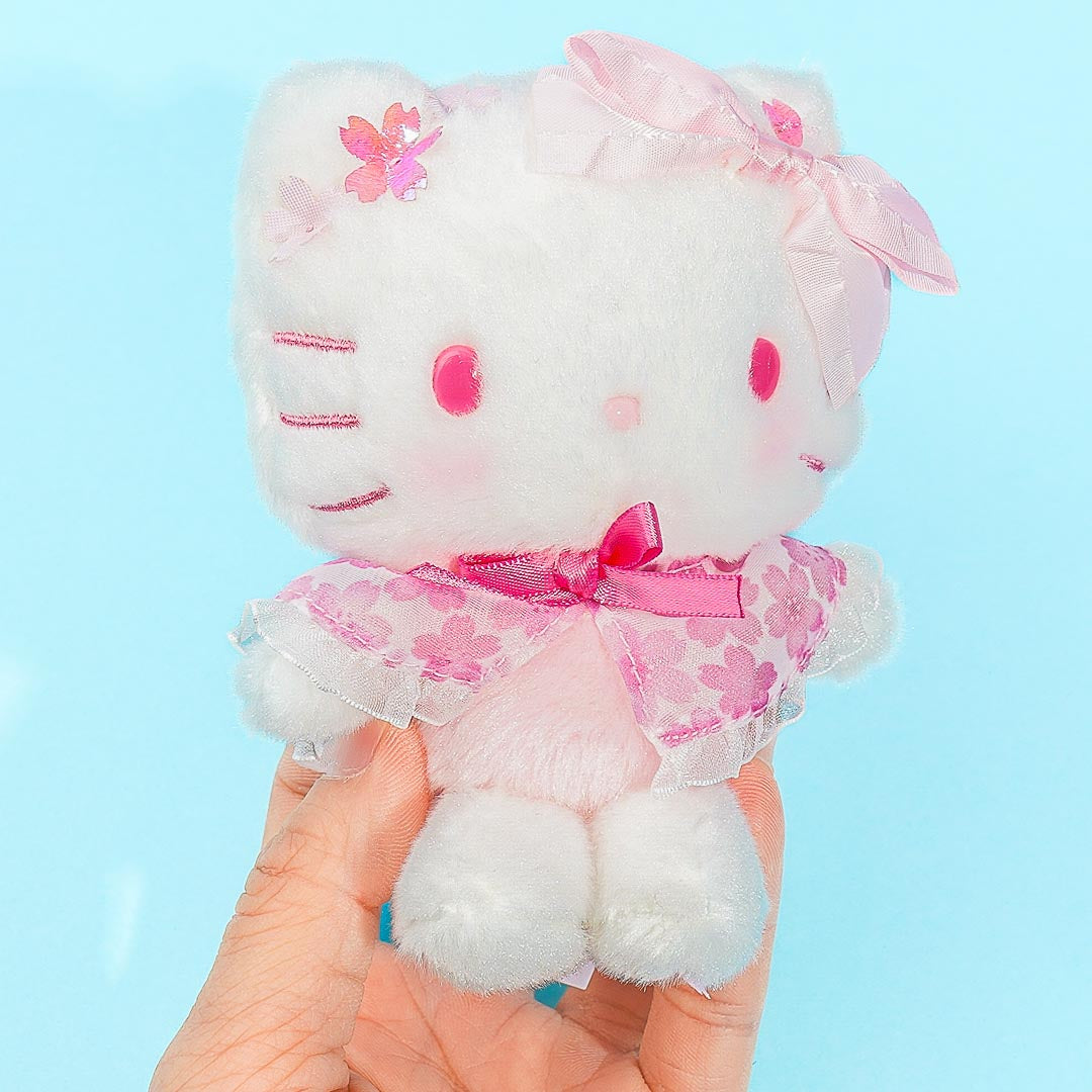 Take this blushing Hello Kitty plushie to your next hanami or cherry blossom-viewing picnic! It comes in medium size and is wearing a cloak decorated with sakura blooms! Attach it to your tote bag to keep it from getting lost while outdoors.
