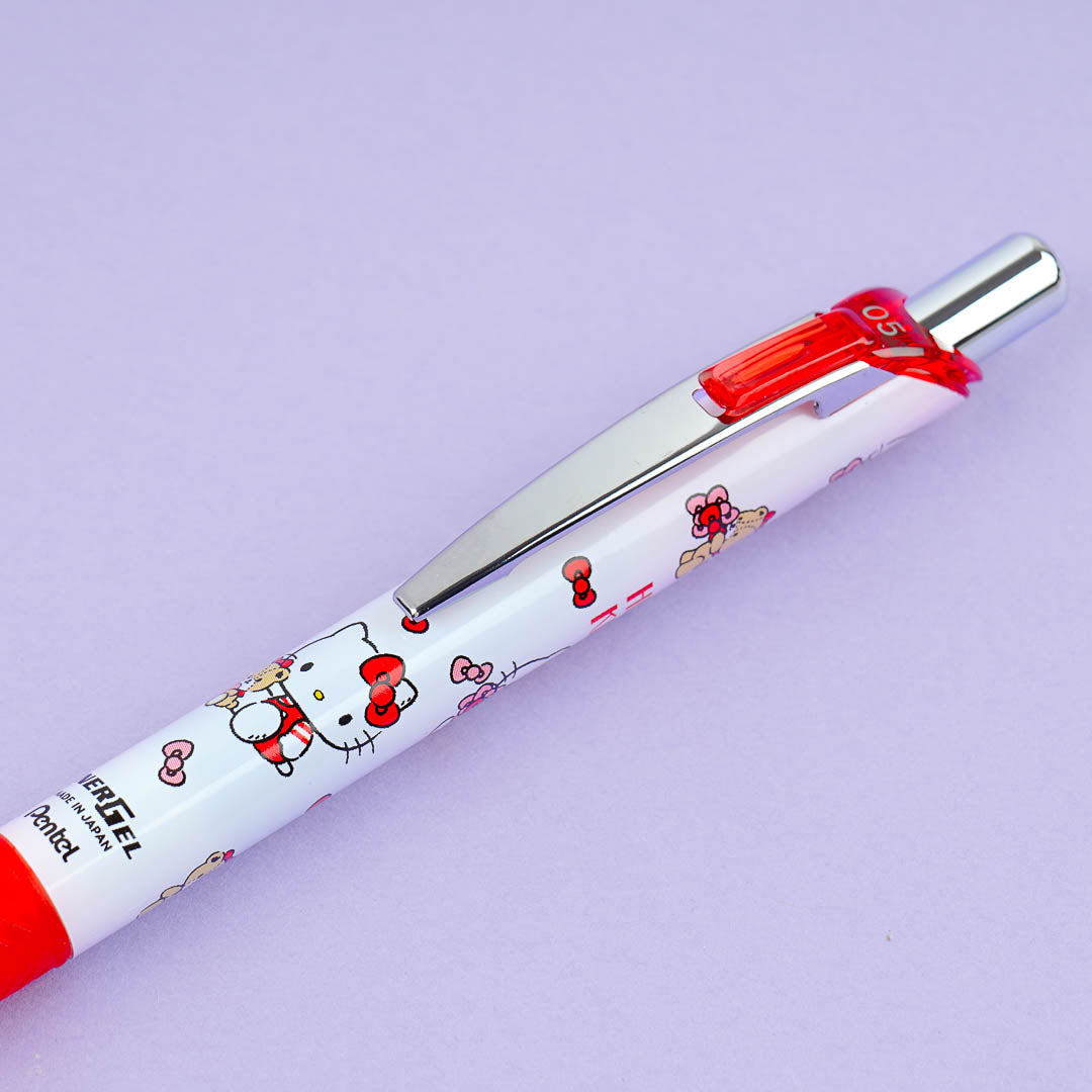 This kawaii click gel pen features cute prints of Hello Kitty and Tiny Chum with some ribbons. You can use it at school and attach it to your notebook with the metal clip. It's also refillable so you can use it even when the ink has run out.