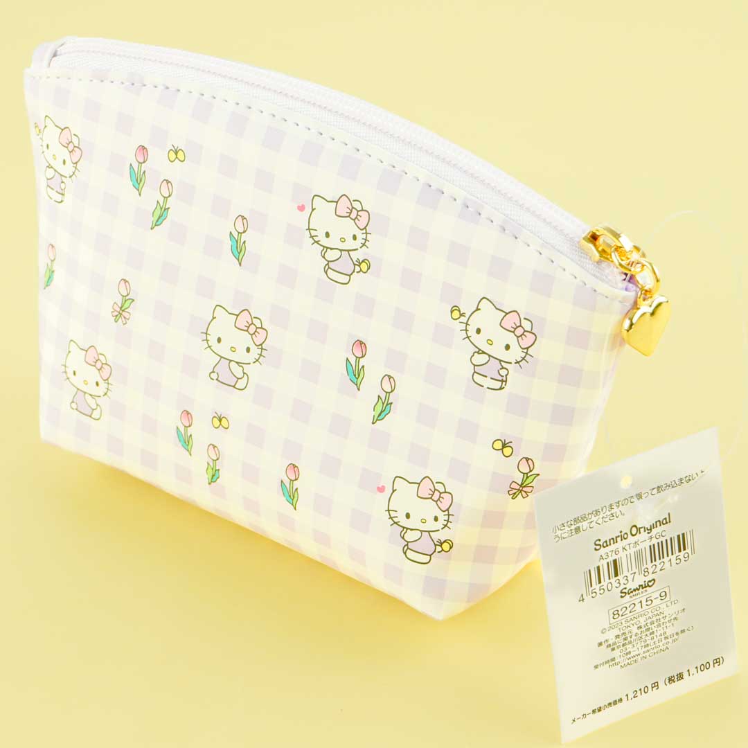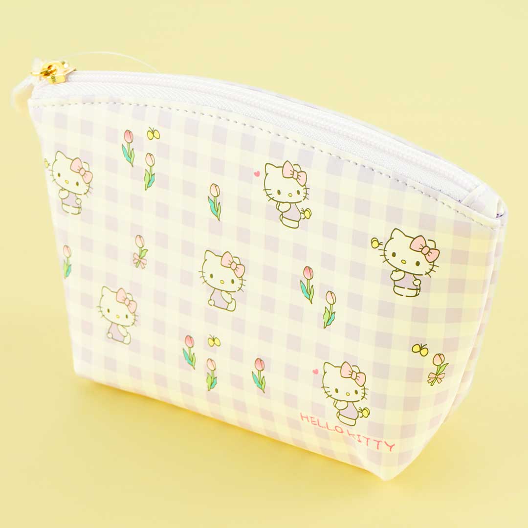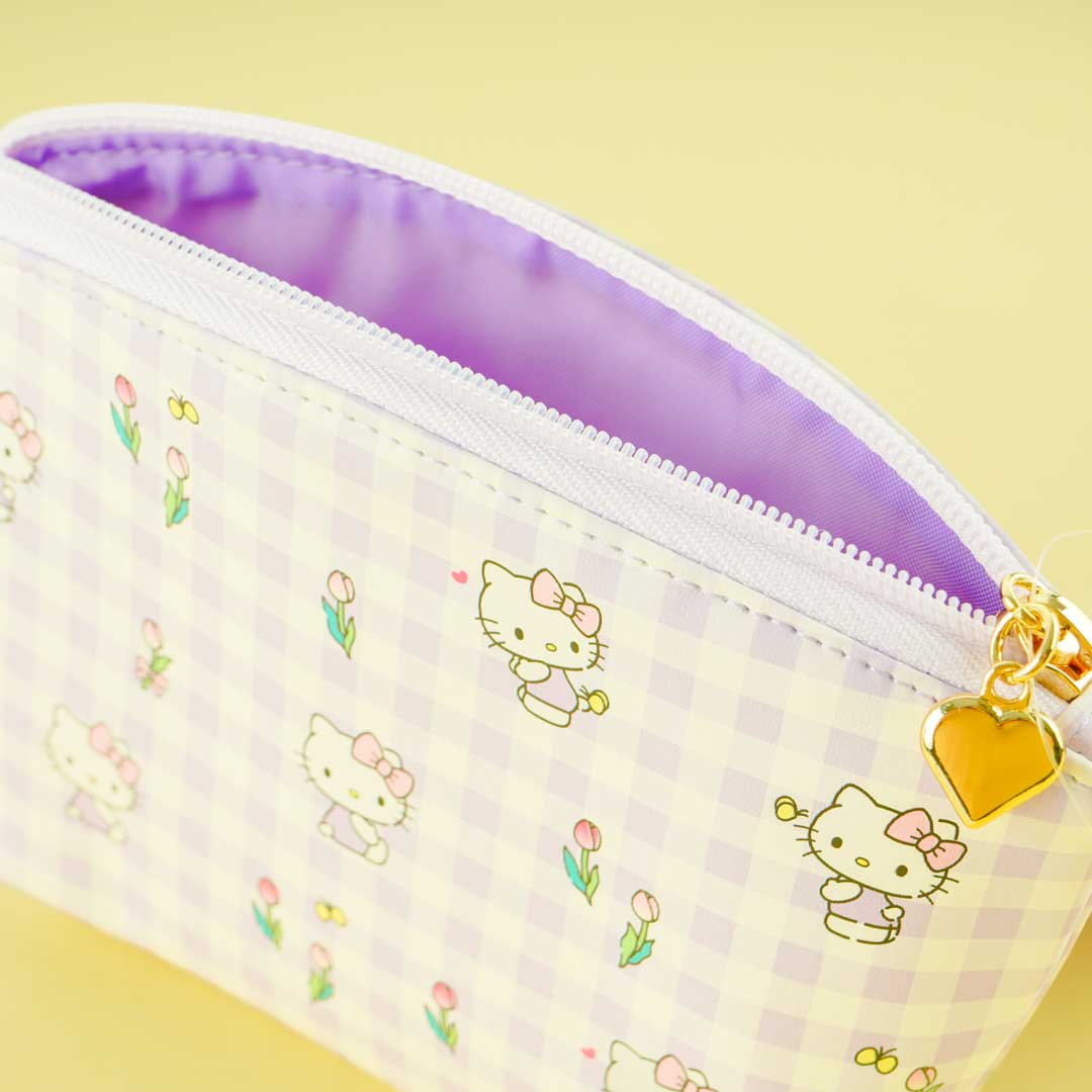 Store your pocket tissues, alcohol spray, mini comb, and other daily essentials inside this super cute pouch! It’s decorated with gingham patterns and illustrations of Hello Kitty and lots of tulip flowers.