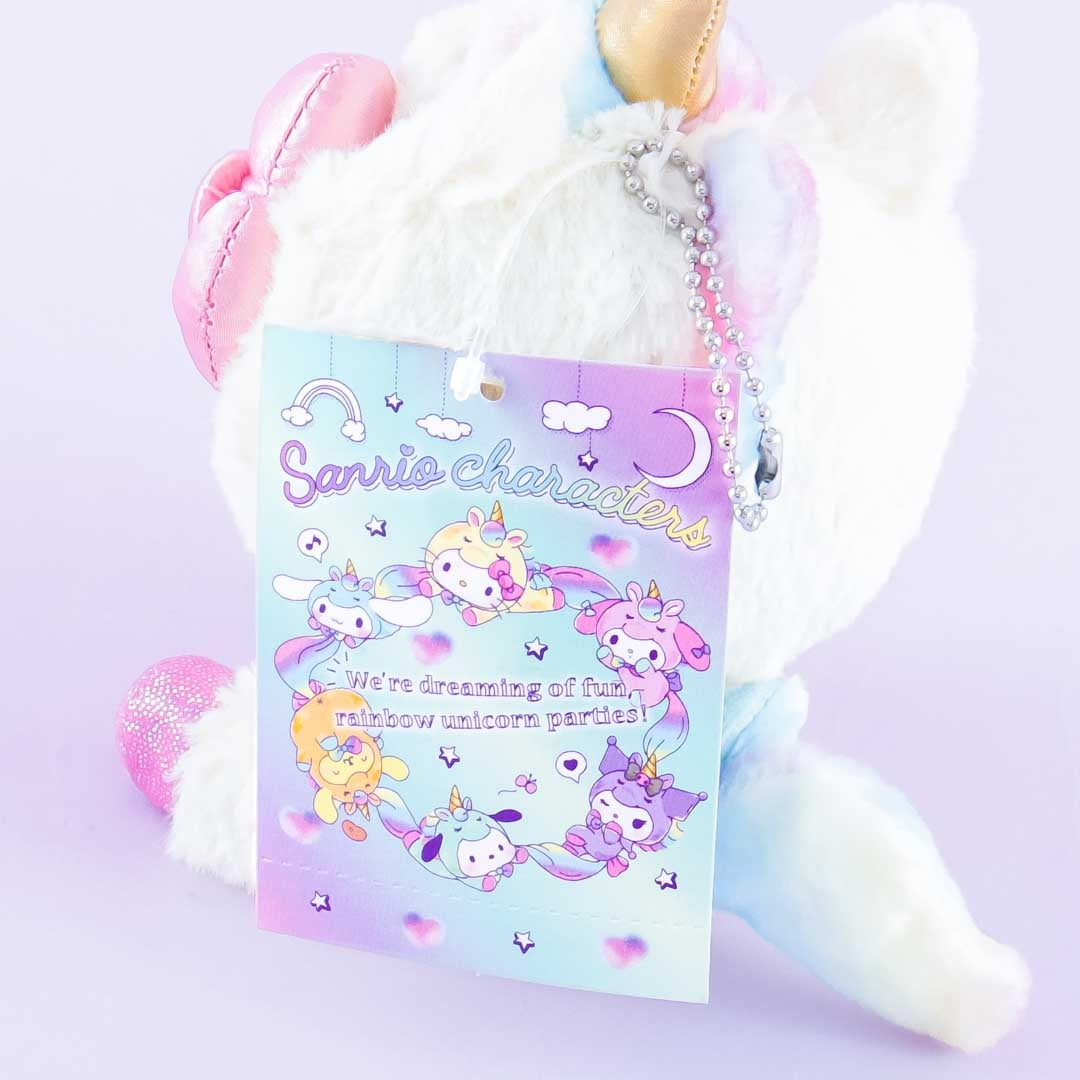 Take Hello Kitty wherever you go by attaching this super kawaii plushie charm to your favorite bag with its detachable ball chain! This cute mini-sized plushie charm is wearing an adorable unicorn onesie. It's made of super soft material that's great for squeezing!