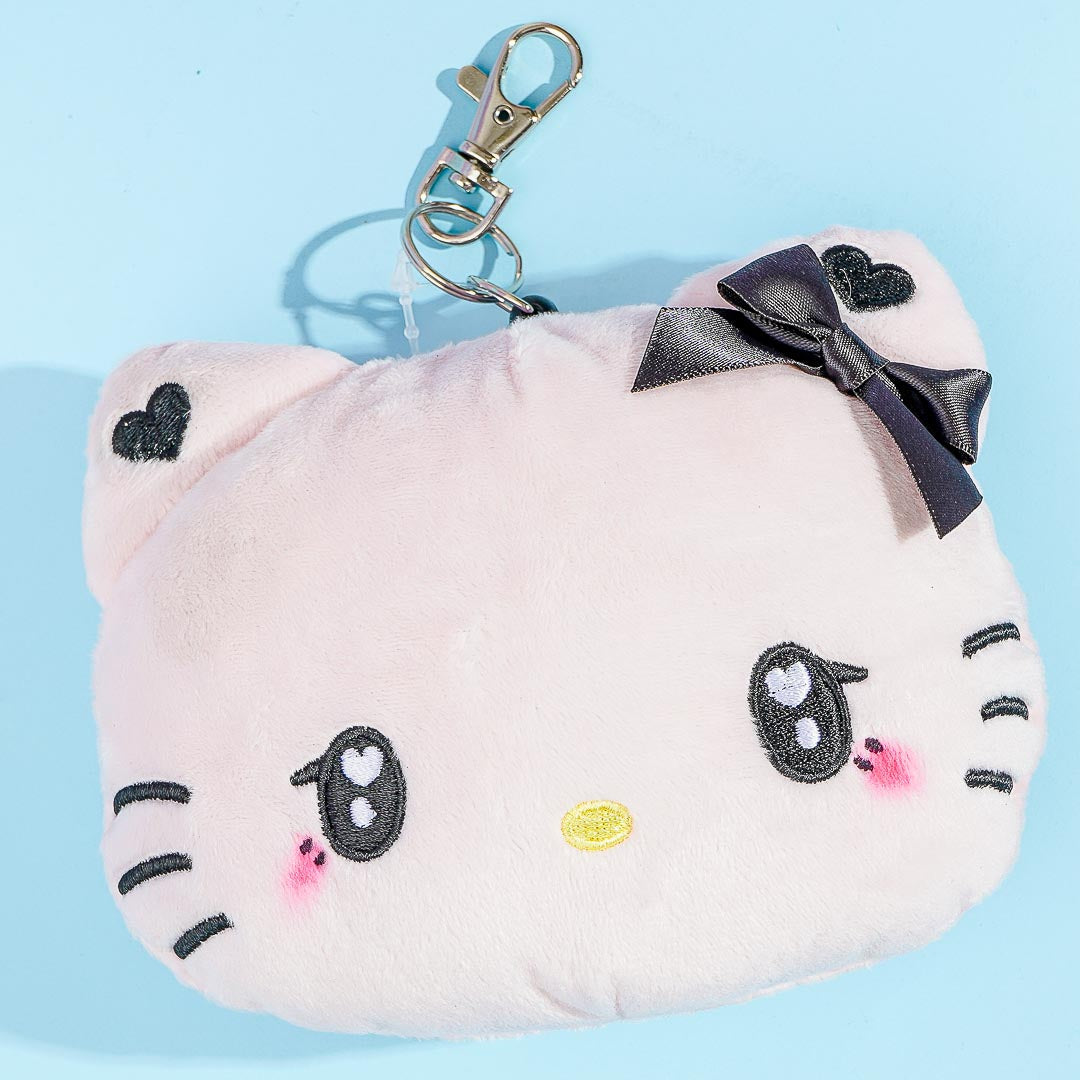 Bring your bus pass in kawaii style by placing it in this cute pass case! It looks like a Hello Kitty plushie with a cute black ribbon and heart embroidery. This case has a zippered pocket for small items and a card slot for your pass. It also doubles as a charm when you attach the hook to your bag!
