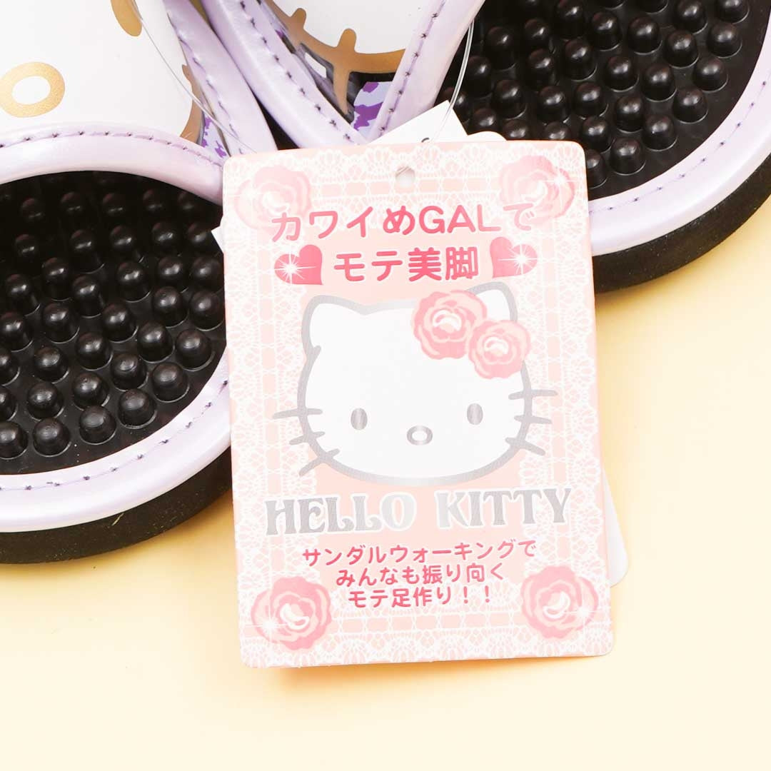 Stay comfortable lounging around the house by wearing this kawaii pair of purple sandals illustrated with Hello Kitty. You can wear socks with these slippers thanks to its adjustable velcro strap! These slippers also have a studded inner surface that massages your feet.