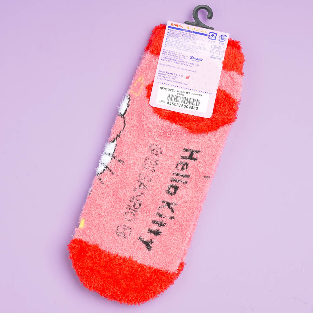 This kawaii pair of socks features Hello Kitty showing off her "yurayura" or swaying dance moves! It's made with fluffy material that's perfect for keeping your feet warm.