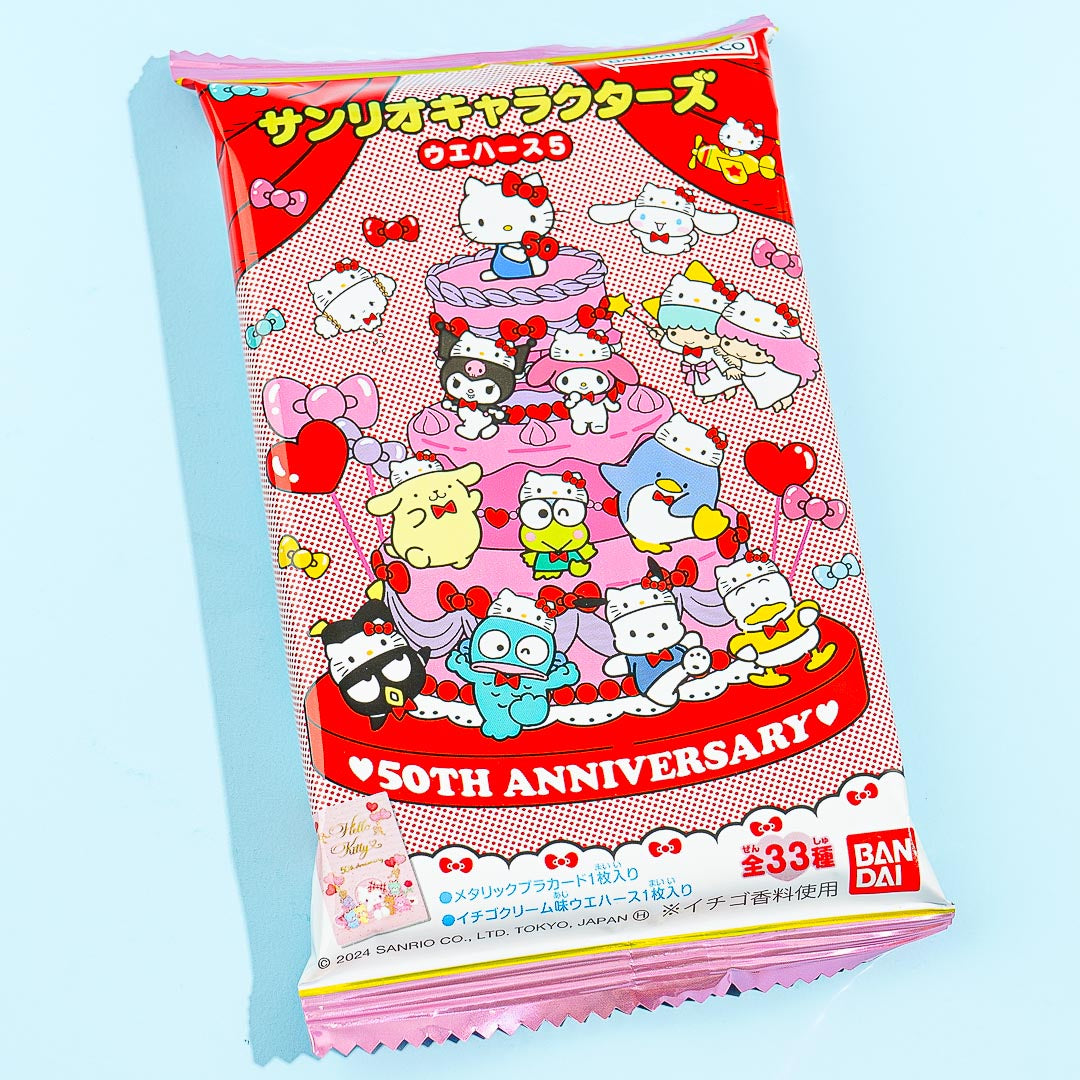 Satisfy your sweet cravings with this delicious strawberry cream-flavored wafer! This yummy snack also comes with a double-sided metallic card that has a random artwork celebrating the fiftieth anniversary of Hello Kitty with Sanrio Characters! You’ll also get random packaging as well when you order!