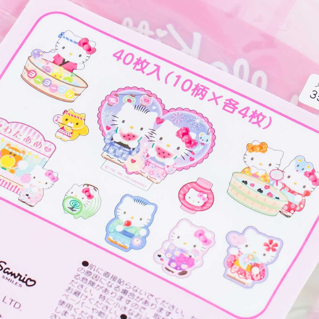 A pack of deco stickers featuring Hello Kitty and friends attending a summer festival