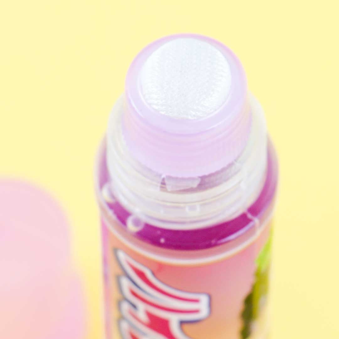 Stick stamps on envelopes by using this kawaii glue pen! It resembles the packaging of the Hi-Chew Grape chewy candy. Simply squeeze the bottle as you brush the sponge tip to the surface to release the colored glue.