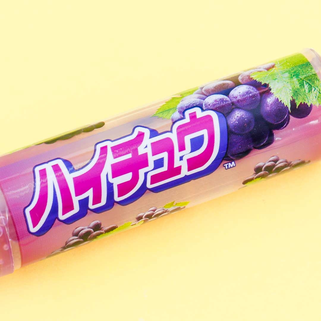 A colored glue pen resembling the Hi-Chew Grape packaging