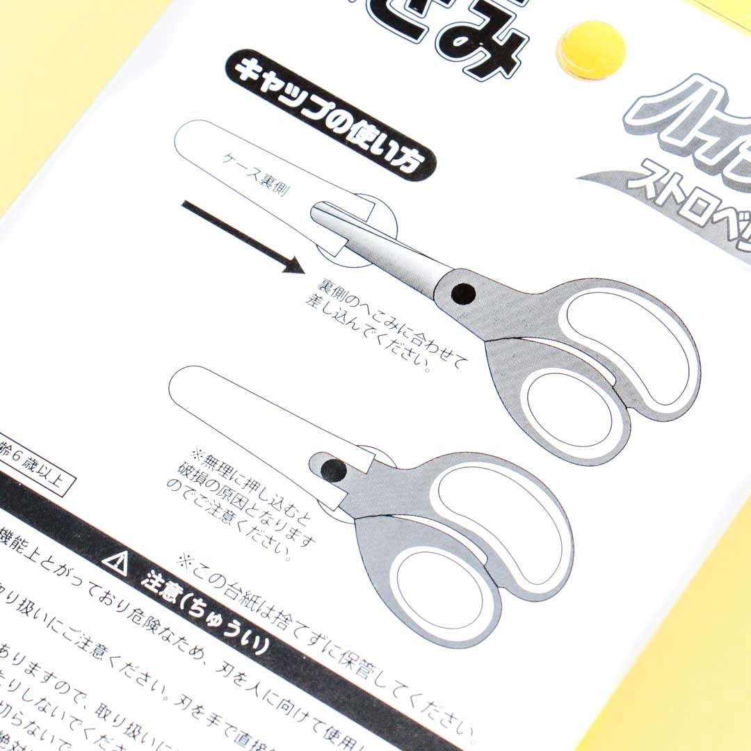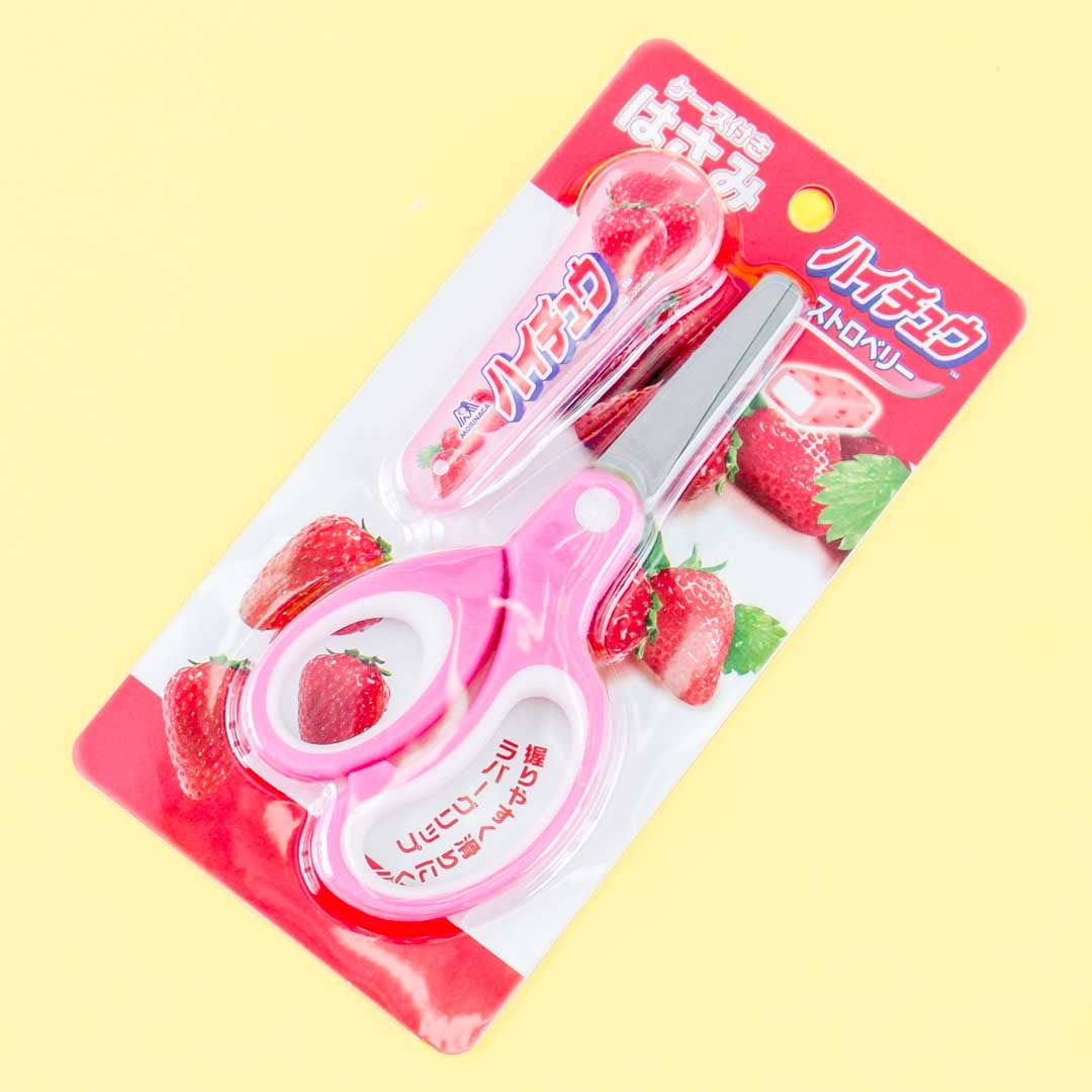 This kawaii pair of scissors feature an illustration inspired by the packaging of Hi-Chew Strawberry candy on the included carrying case! Use this super cute pair to cut ribbons and other craft materials. It has round-ended blades and is safe for children’s use.