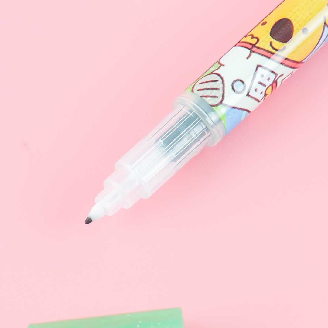This kawaii double-tip marker resembles the packaging of Koala’s March biscuits by Lotte. It has a fruity melon scent and has both fine and broad pen tips. Doodle and scribble on your journal using this kawaii marker!