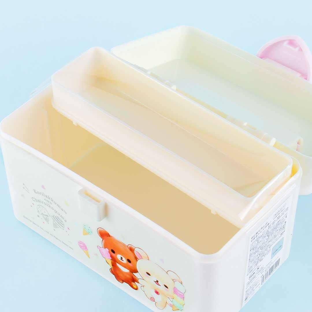 A kawaii storage case illustrated with Rilakkuma and Chairoikoguma eating ice cream