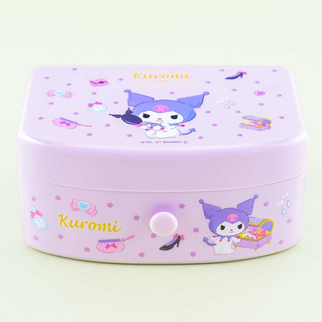 A super cute jewelry box featuring prints of Kuromi with beauty items