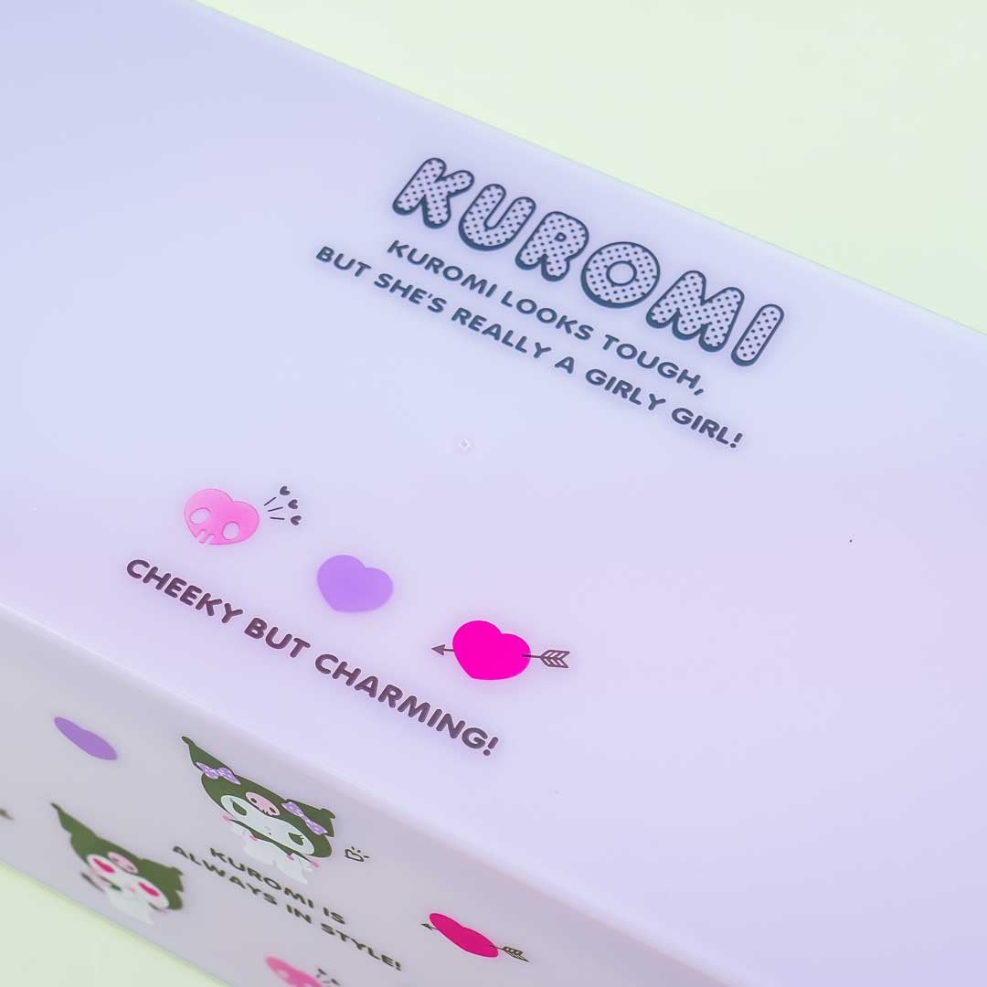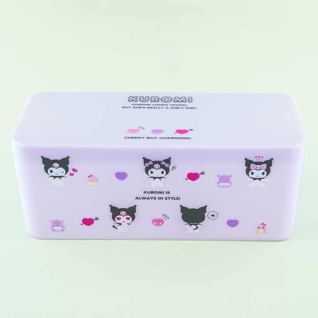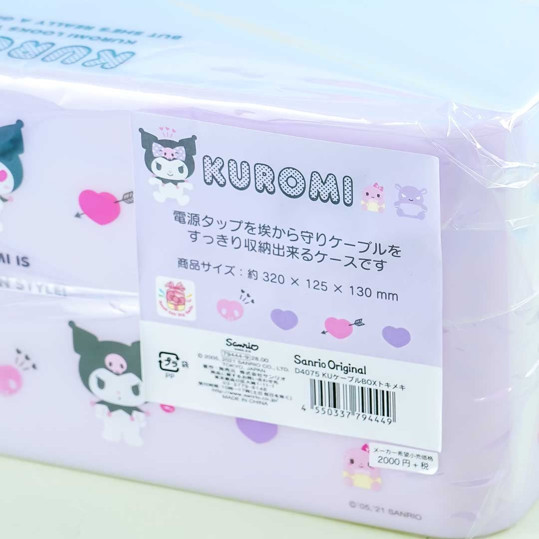 Keep the cords of your phone and chargers organized by using this kawaii hard case with cute prints of Kuromi and lots of hearts!! It has two adjustable holes on the side and a lid. Simply place the power strip inside the wire storage.