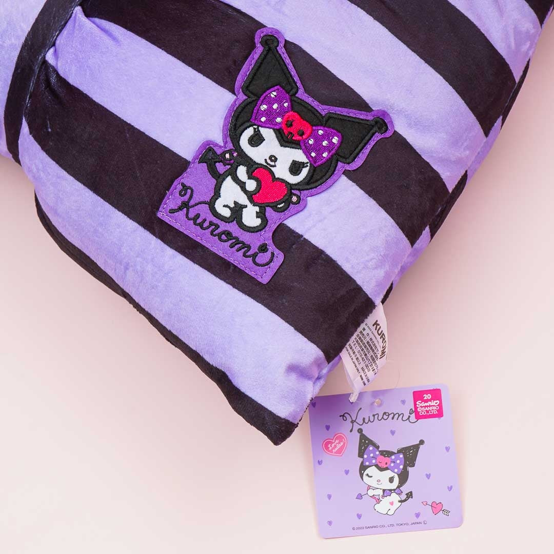 This fluffy cushion is shaped like a bow and is made of super-soft boa and cotton! It has lots of stripes and a mini Kuromi print. Sleep soundly by snuggling on this kawaii pillow!