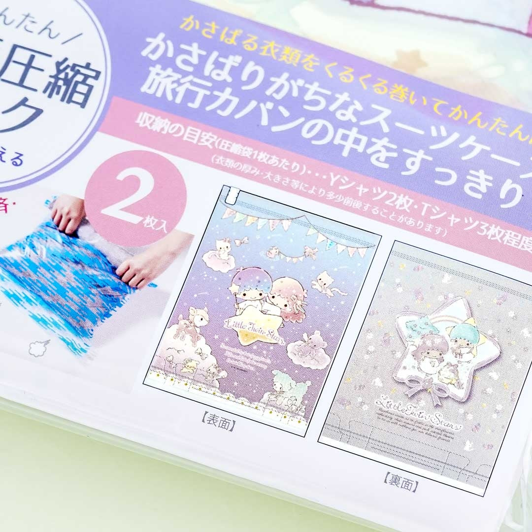A kawaii set of compression bags featuring prints of the Little Twin Stars