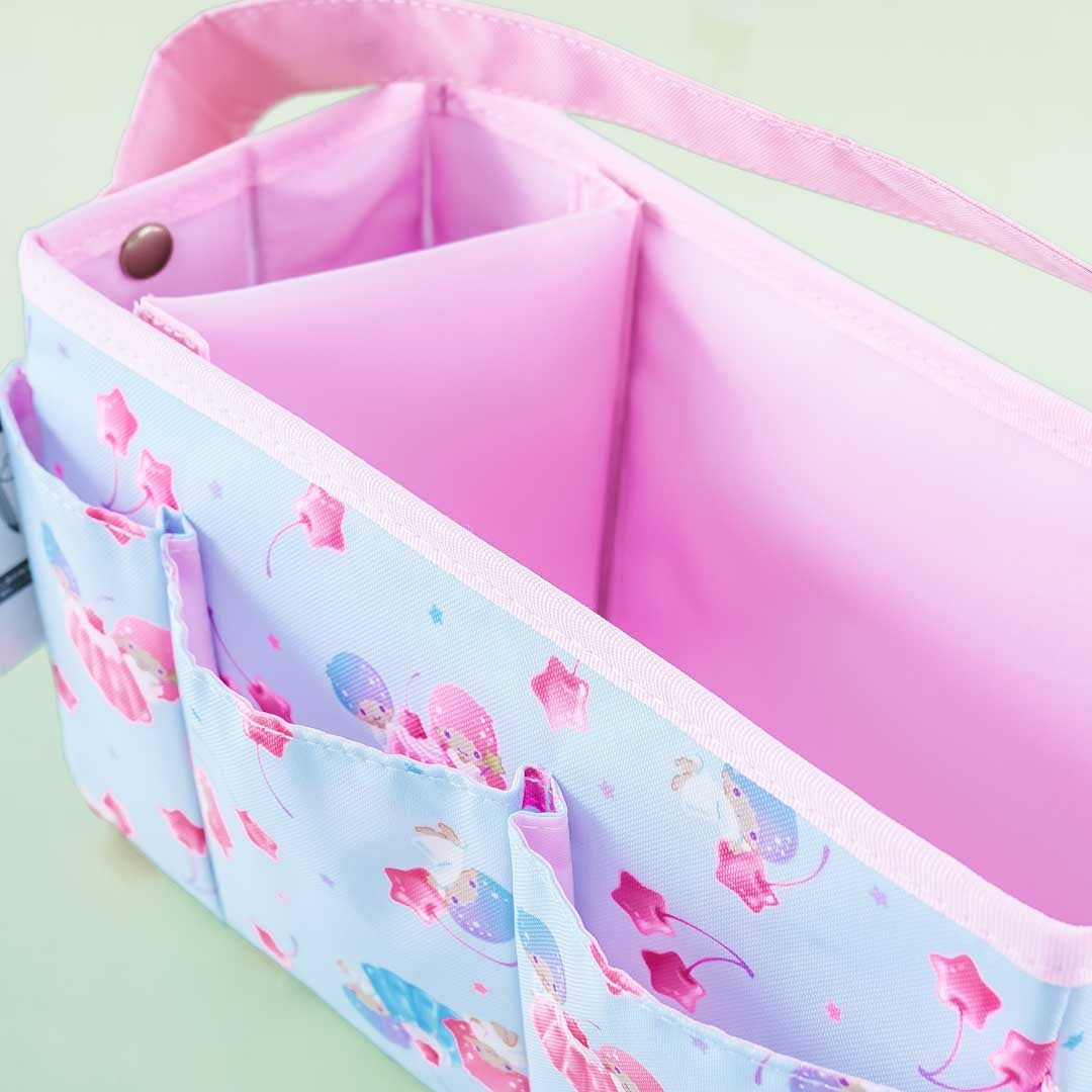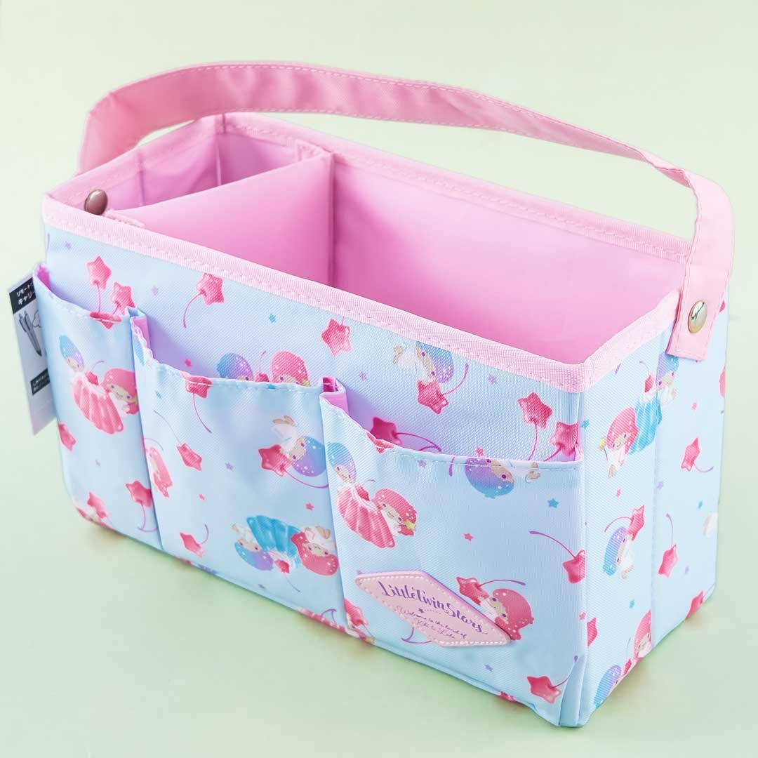 Add a dose of kawaii to your makeup station with this super cute carry box. It features illustrations of the Little Twin Stars with a yummy gelatin dessert! You can organize your brushes and other makeup tools with the three pockets on the outer layer. This basket also comes with a handle and a removable divider plate inside.
