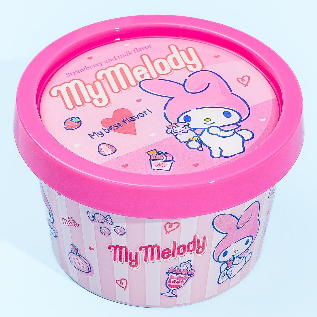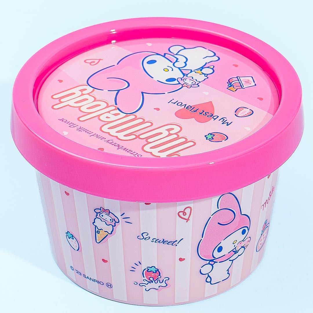 This super cute canister looks like a cute ice cream cup featuring My Melody! Store your accessories inside this round plastic container and secure them with the lid.