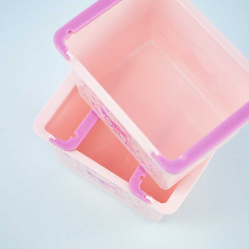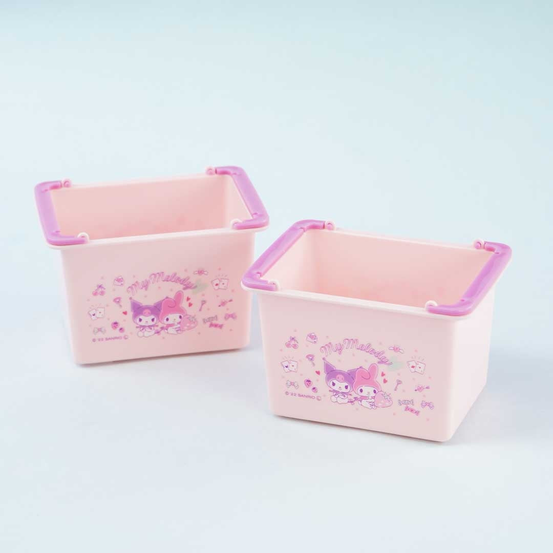 Organize the knick-knacks on your desk with this super cute basket set. It's illustrated with My Melody and Kuromi hanging out with one another! You can fold the handles of these baskets inwards and then stack them on top of each other.
