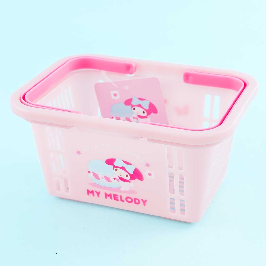 Add a dose of cuteness to your desktop as you organize your stationery stuff using this cute storage container! It is shaped like a mini shopping basket and illustrated with prints of My Melody with a giant yummy French macaroon.