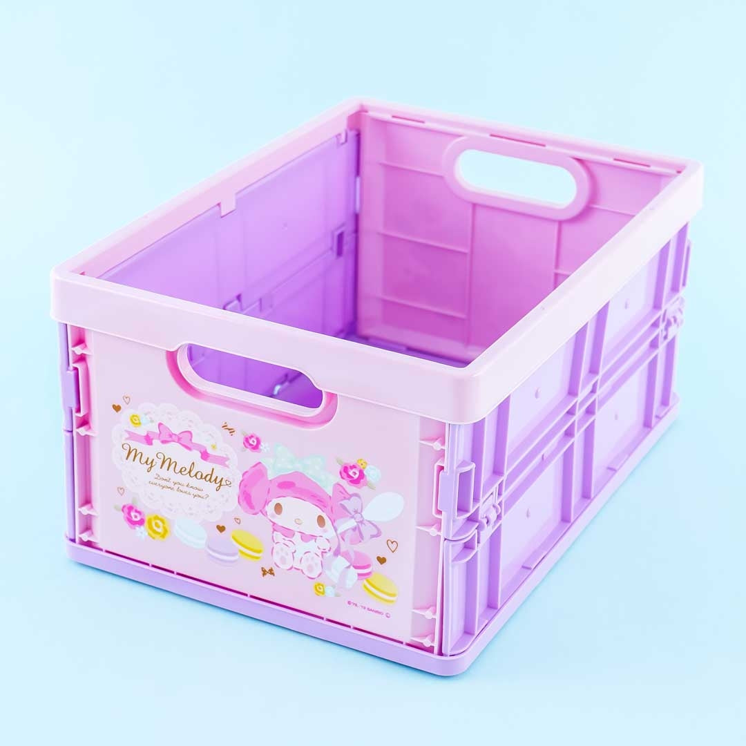 Organize your favorite makeup products by using this kawaii foldable container! It’s decorated with illustrations of My Melody with colorful macaron treats and is made of durable plastic. Simply stack it up with boxes of the same size or fold it away when not in use.