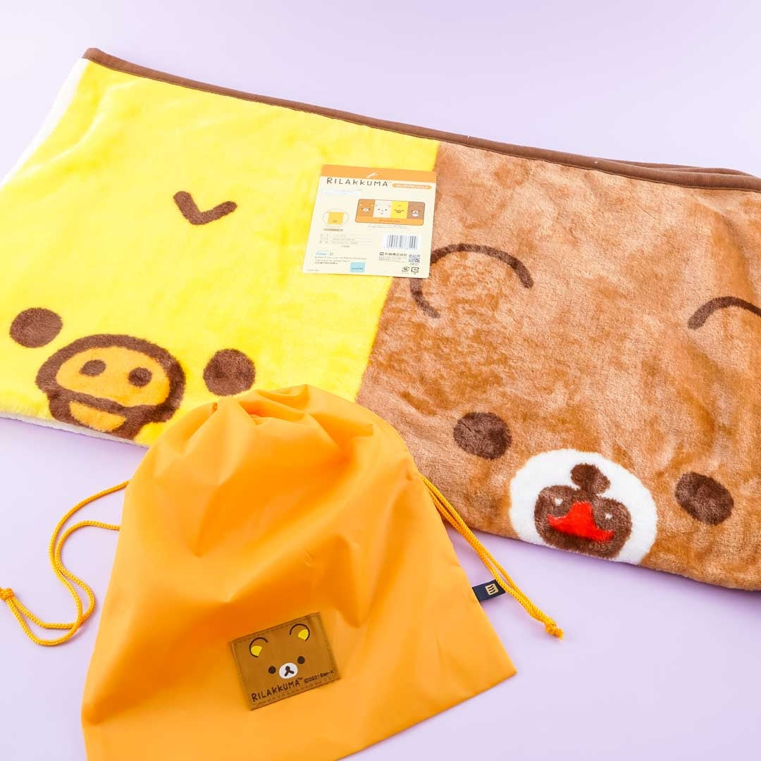Rilakkuma & Friends Long Meyer Blanket With Drawstring Pouch