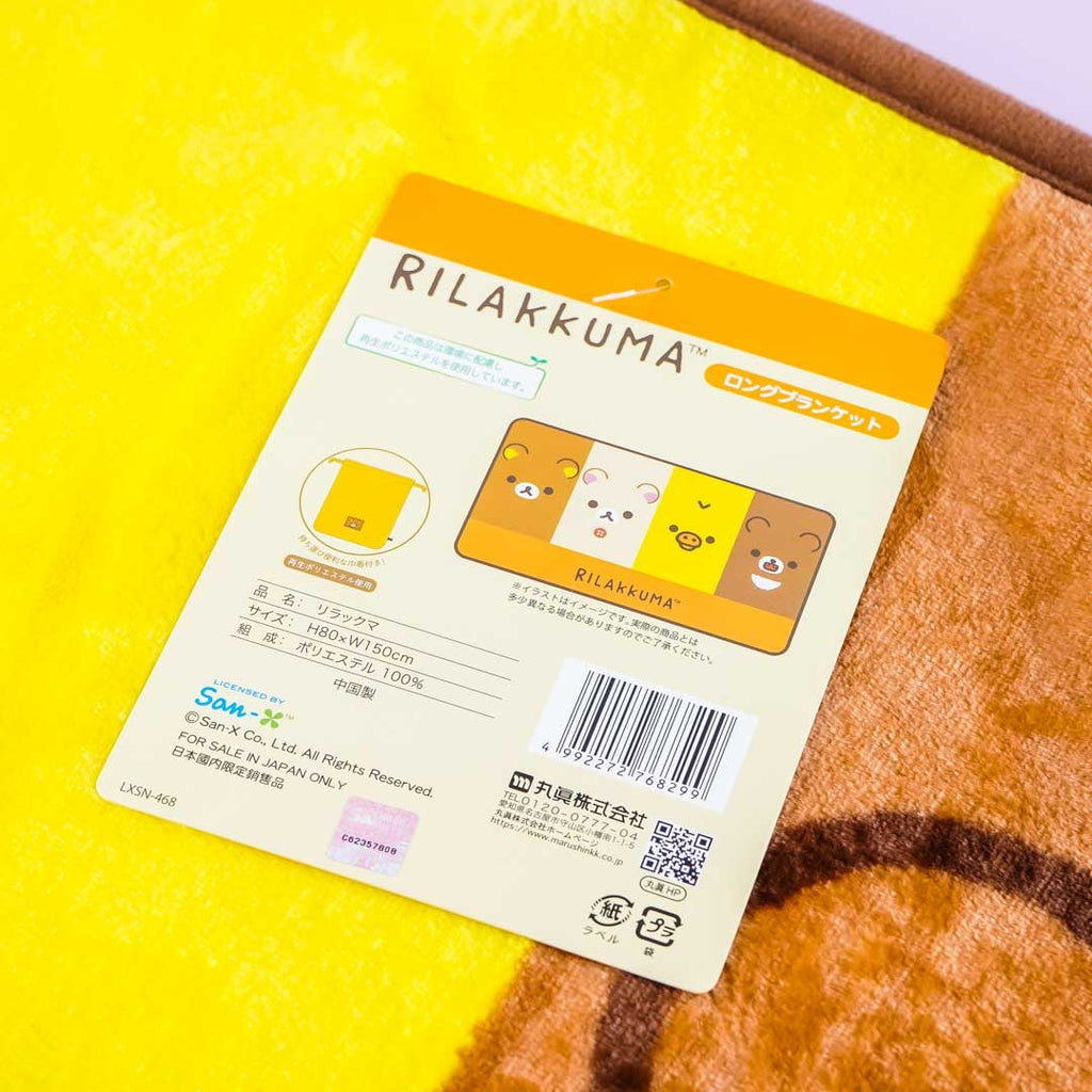 • A kawaii long blanket with illustrations of Rilakkuma and friends