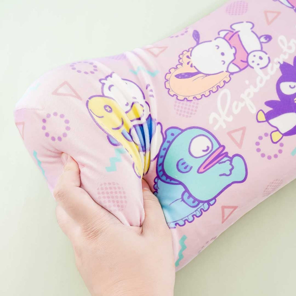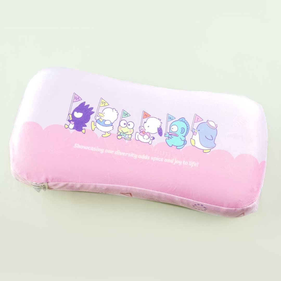 Get a good night’s sleep with this super cute pillow! It has memory foam that’s made of a combination of special materials that provides pressure relief and great support for your head and back. This kawaii cushion has cute illustrations of the Hapidanbui gang namely Tuxedosam, Pochacco, Bad Badtz-Maru, Hangyodon, Pekkle, and Keroppi — all sleeping soundly! The backside of the pillow on the other hand has prints of the members walking in line with raised flags.