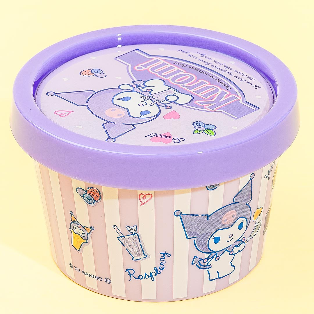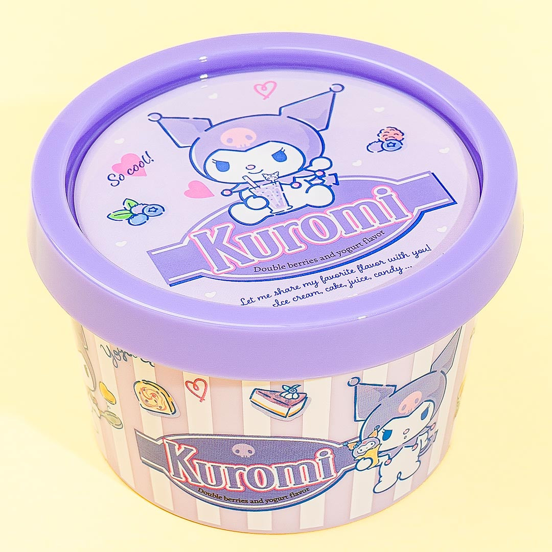 This super cute round plastic case is perfect for keeping your hair ties, clips, and other small accessories! It looks like an ice cream cup with blueberry flavor and features prints of Kuromi. You can secure your items with its tight lid!
