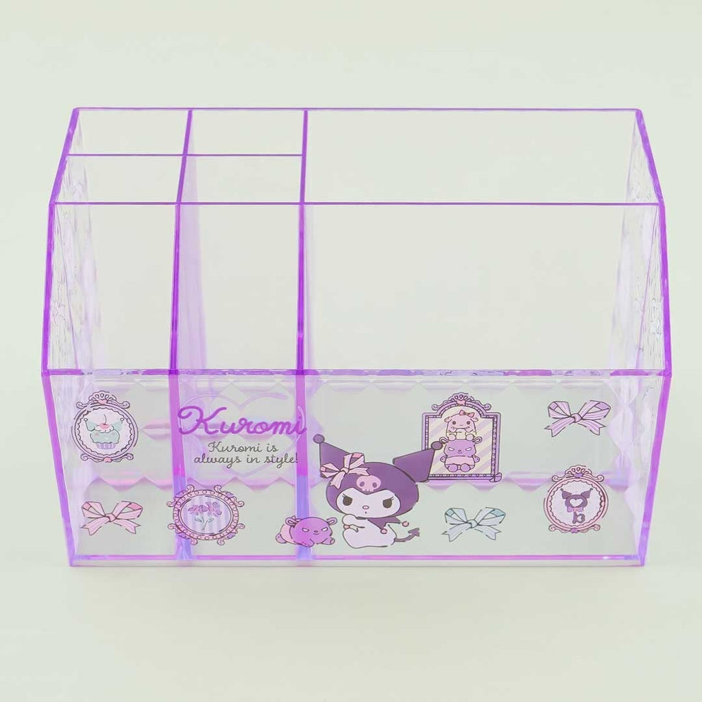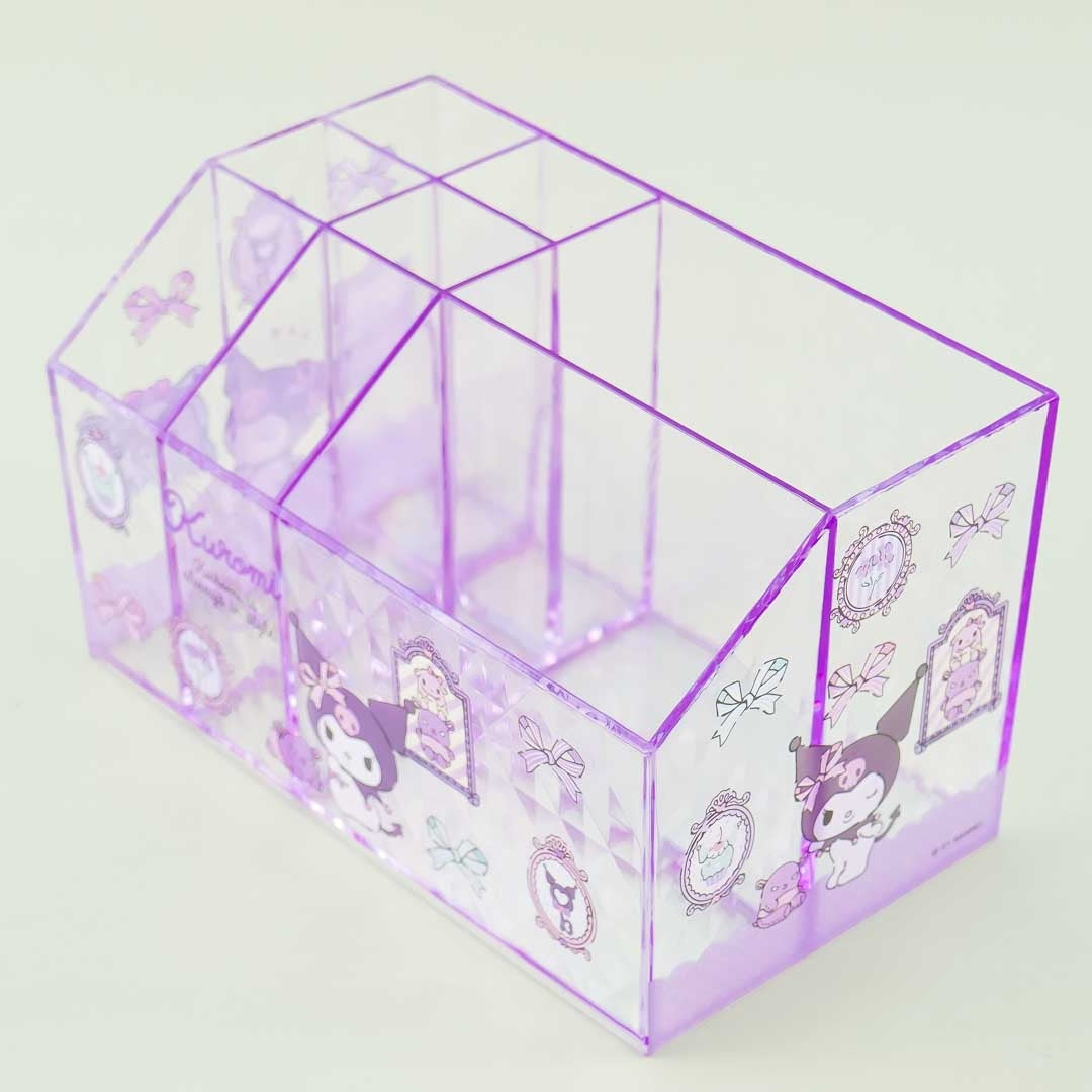 Organize your makeup brushes and other beauty tools using this storage rack that’s made of clear resin! It has eight separate sections of different sizes and is decorated with prints of Kuromi and her collection of mirrors.