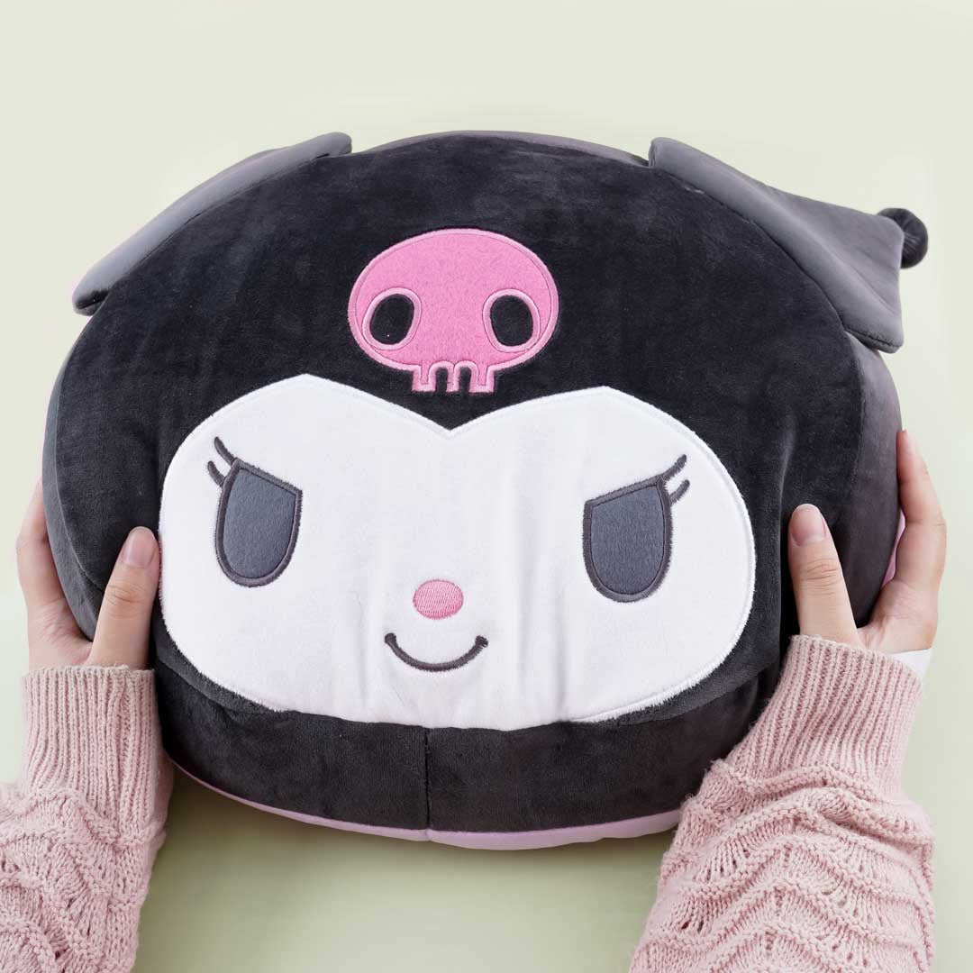 Have fun snuggling with this fluffy Kuromi head pillow! This kawaii pillow is large and mochiri or super puffy to touch!
