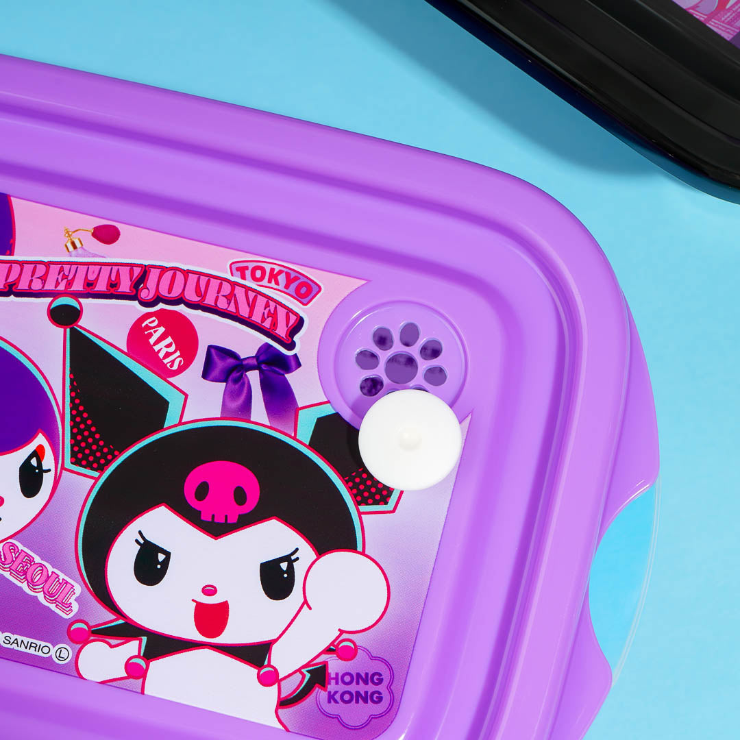 This set of stackable containers features cute illustrations of Kuromi and her sister, Romina! It's made from durable plastic that contains antibacterial silver ions to help keep your food fresh. Each container has air valves so you can use it in the microwave with the lid on!