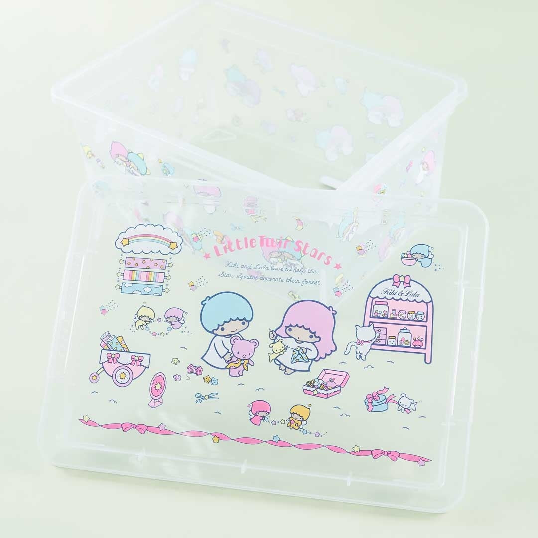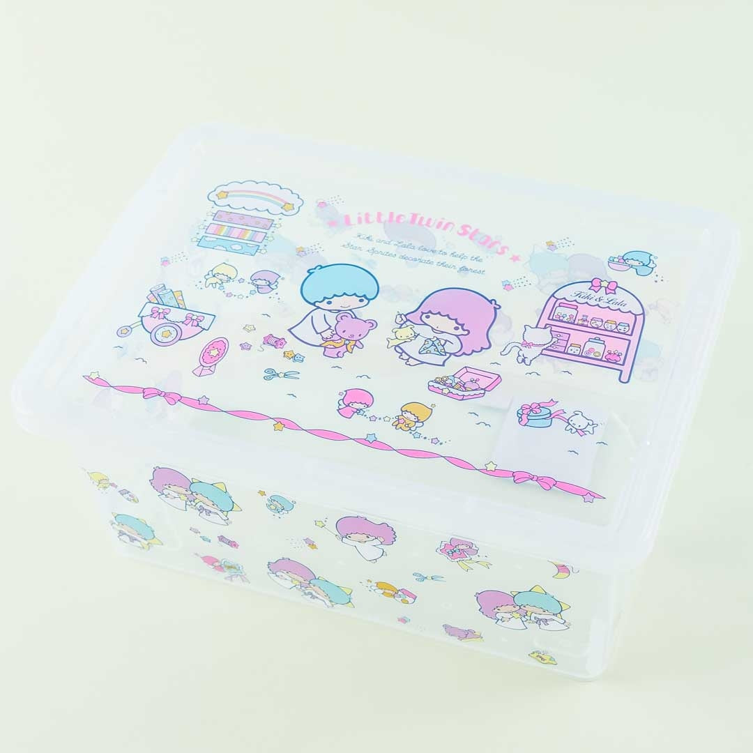 Use this kawaii transparent storage box to organize your jewelry, cosmetics, and other essentials. It showcases prints of the Little Twin Stars hanging out together.