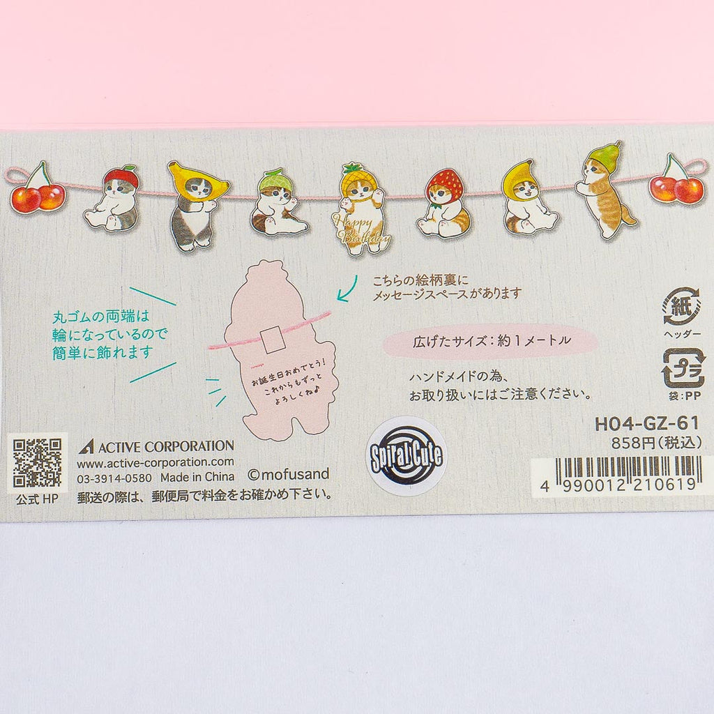 Add a major dose of cuteness to your upcoming birthday party by decorating with this kawaii streamer! This fun party garland is decorated with cutouts of Mofusand characters wearing adorable fruit hats. It also comes with a card so you can write a special message to the birthday celebrant.