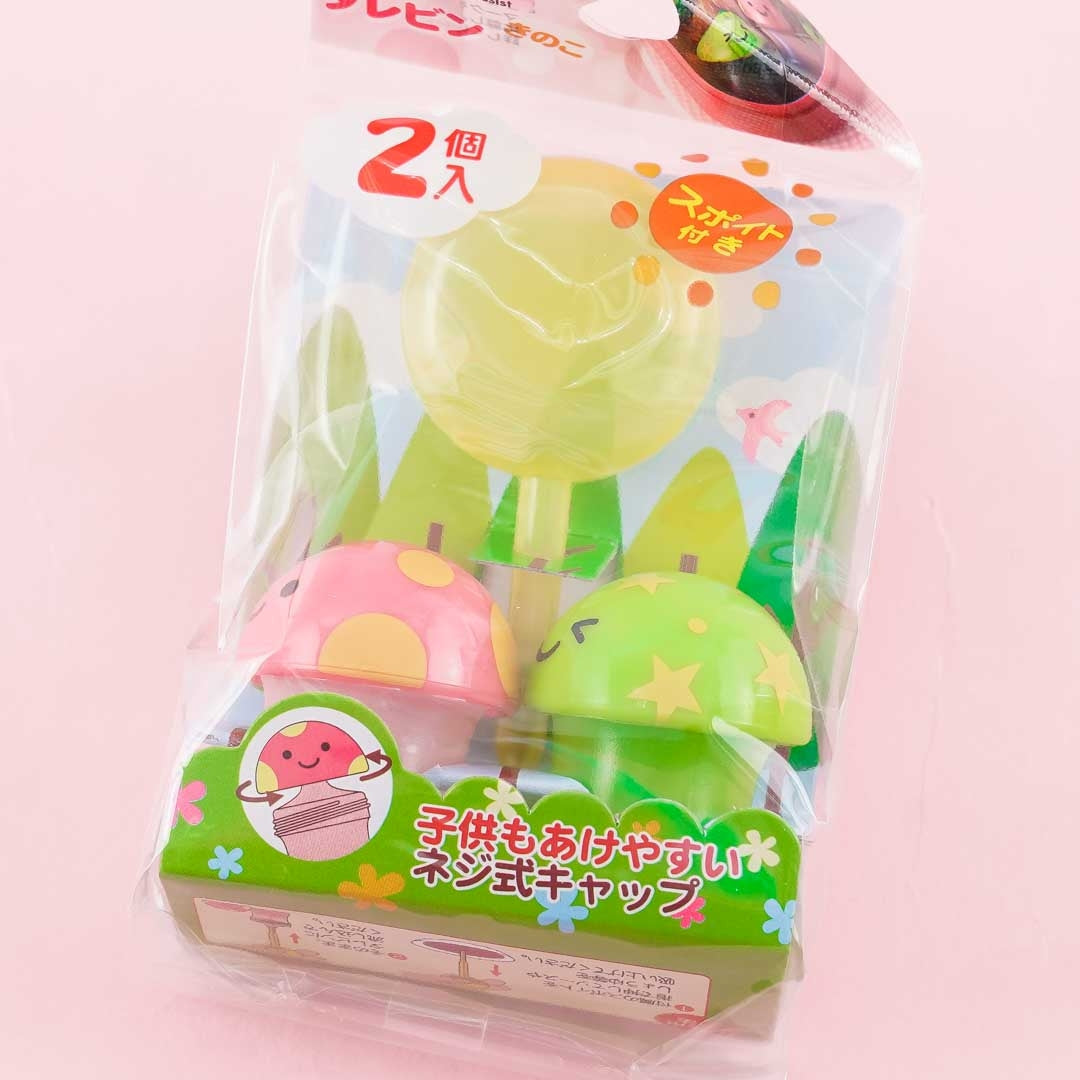A kawaii set of mini sauce containers designed to look like mushrooms