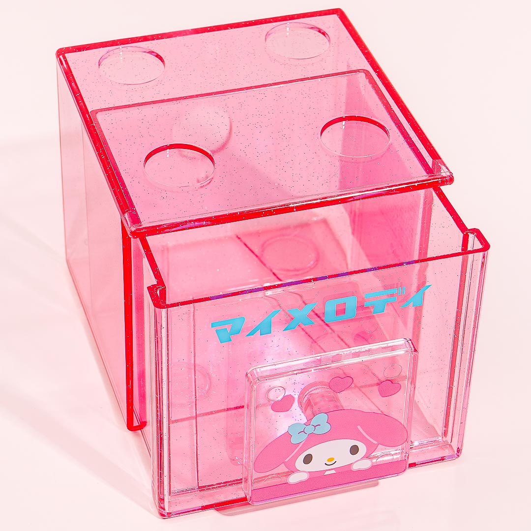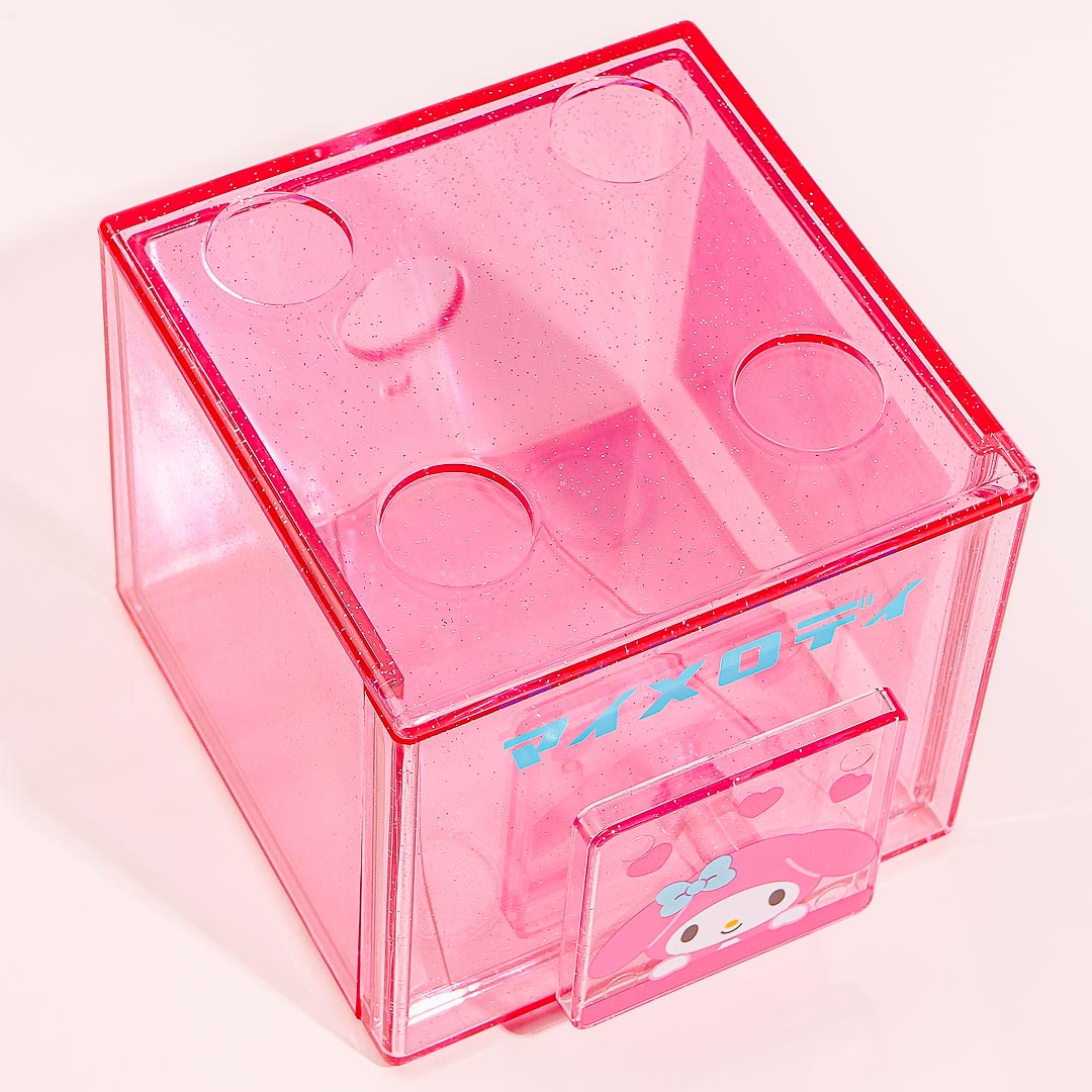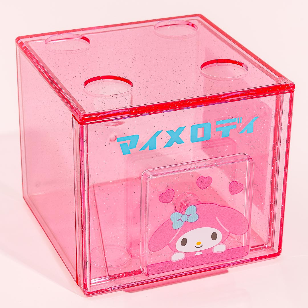 Kawaii-fy your bedside table by adding this super cute transparent chest with glitters! It has a square handle decorated with a My Melody print. This cube-shaped case can also be stacked on top of other chests from the same series.