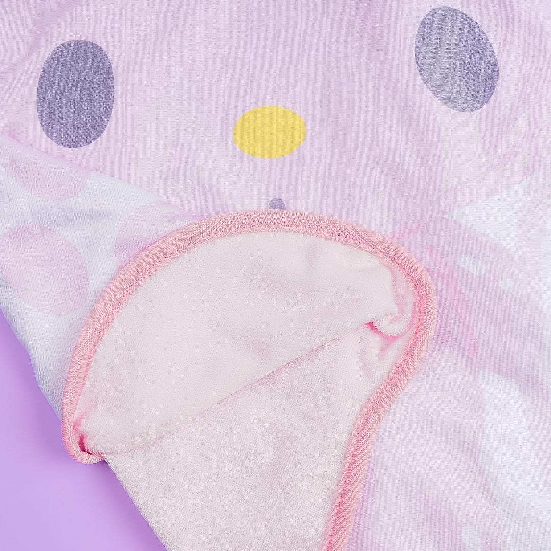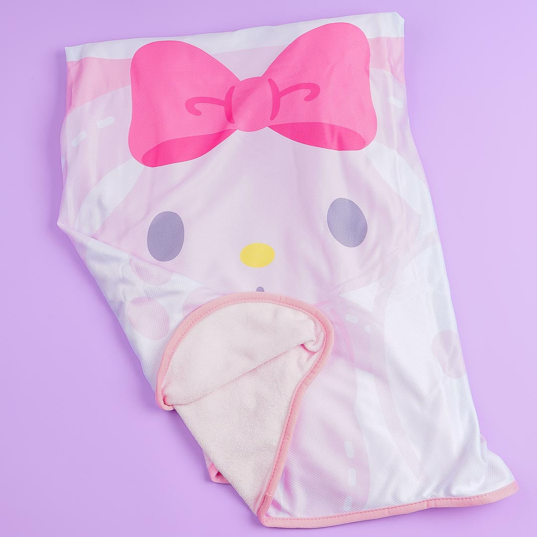 This kawaii blanket is perfect for My Melody lovers. It features a die-cut illustration of her holding her brother, Rhythm. The breathable fabric makes it super comfy while you sleep.