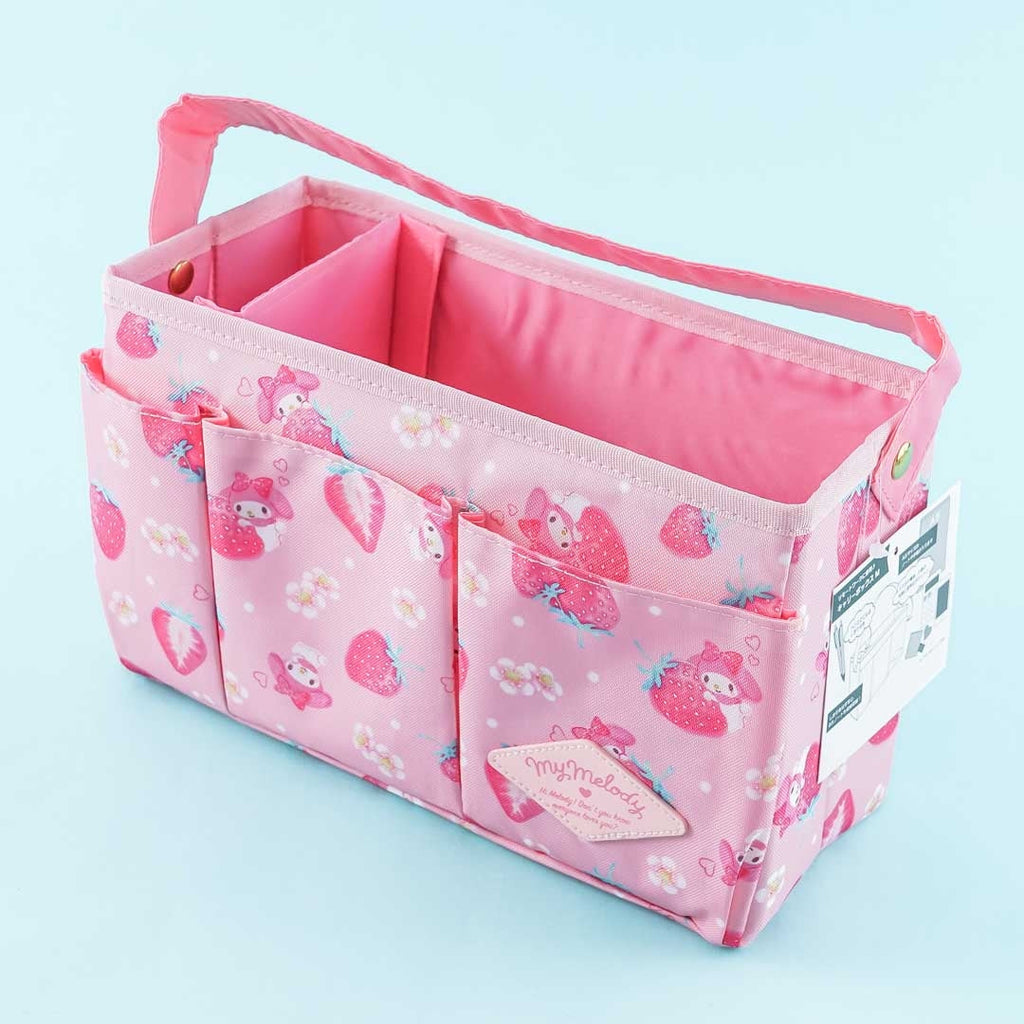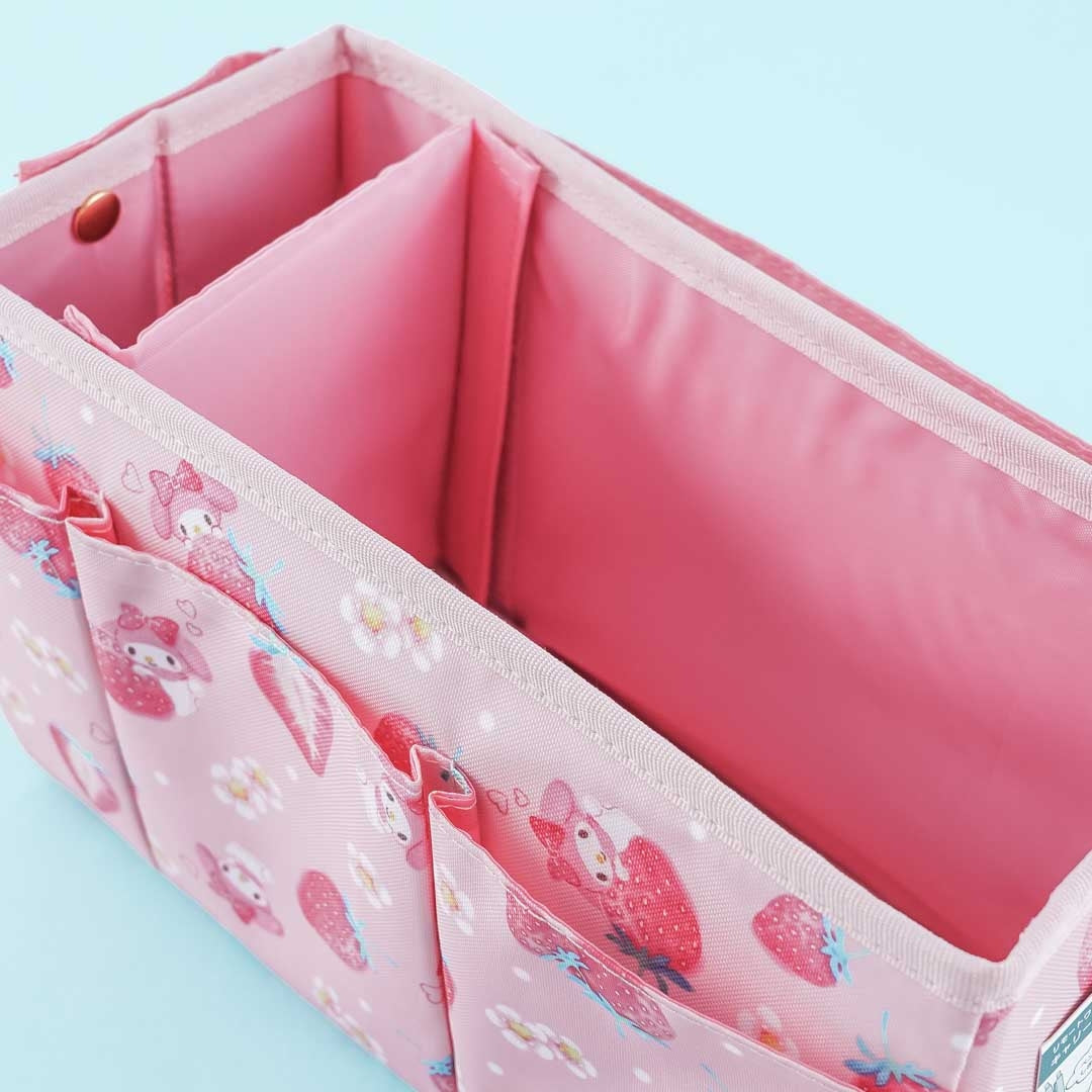 Keep your desk clutter-free with this super cute carry box. It features illustrations of My Melody and strawberries. You can organize your trinkets with the three pockets on the outer layer. This basket also comes with a handle and a removable divider plate inside.