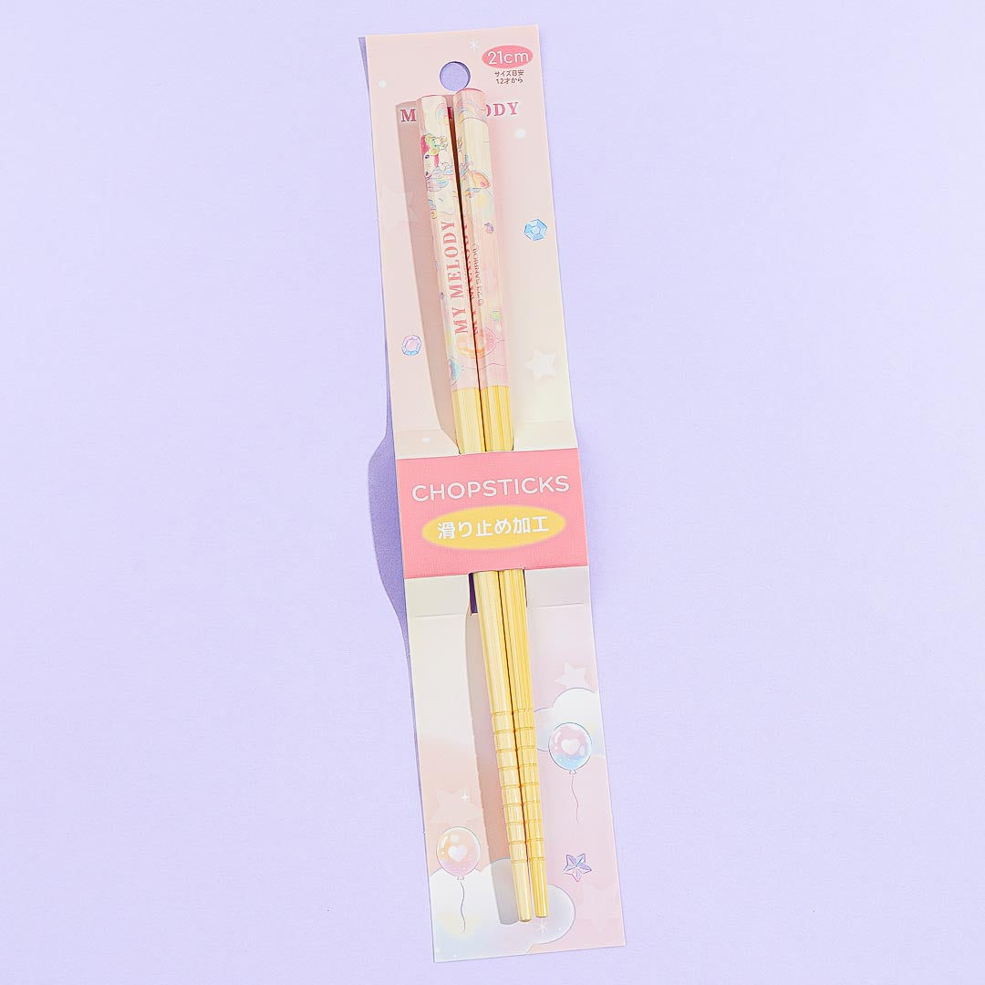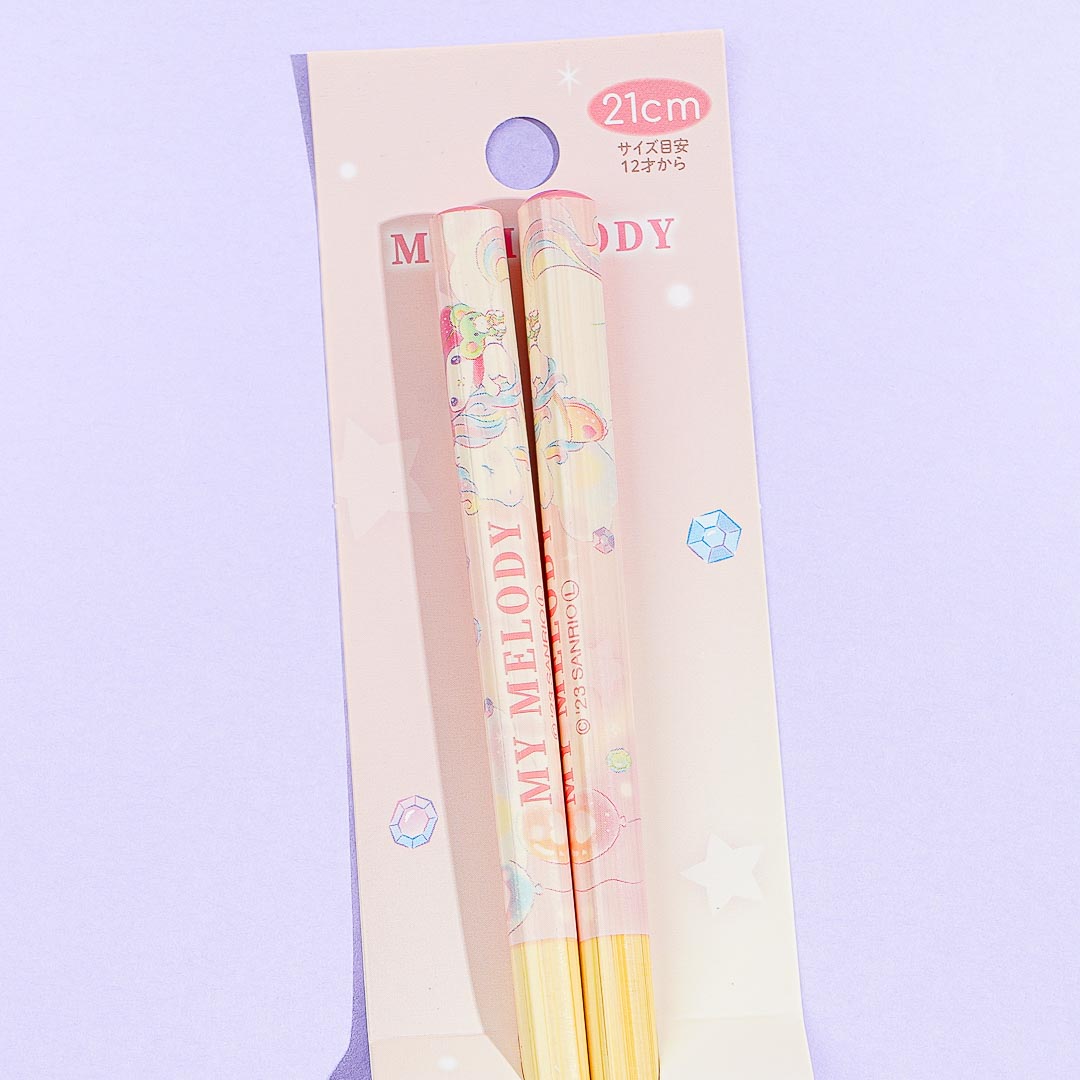 These super cute bamboo chopsticks feature kawaii prints of My Melody playing with her new friend, the Glitter Unicorn! Have fun eating your favorite dim sum using this reusable pair with a non-slip tip.