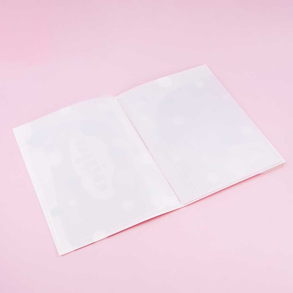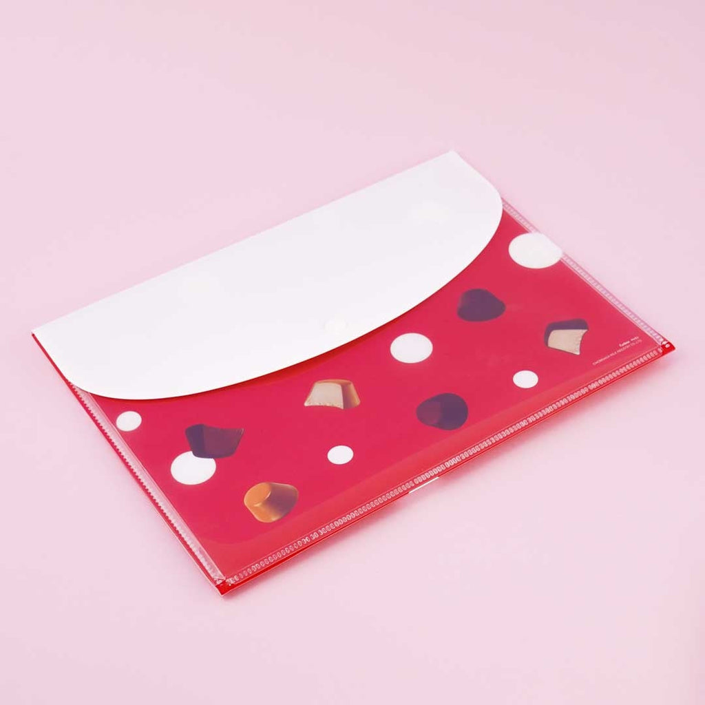 Organize important documents using this cute clear pocket case file! It's decorated with Pino chocolate. This case file has 6 clear pockets and it has a button closure that you can use.
