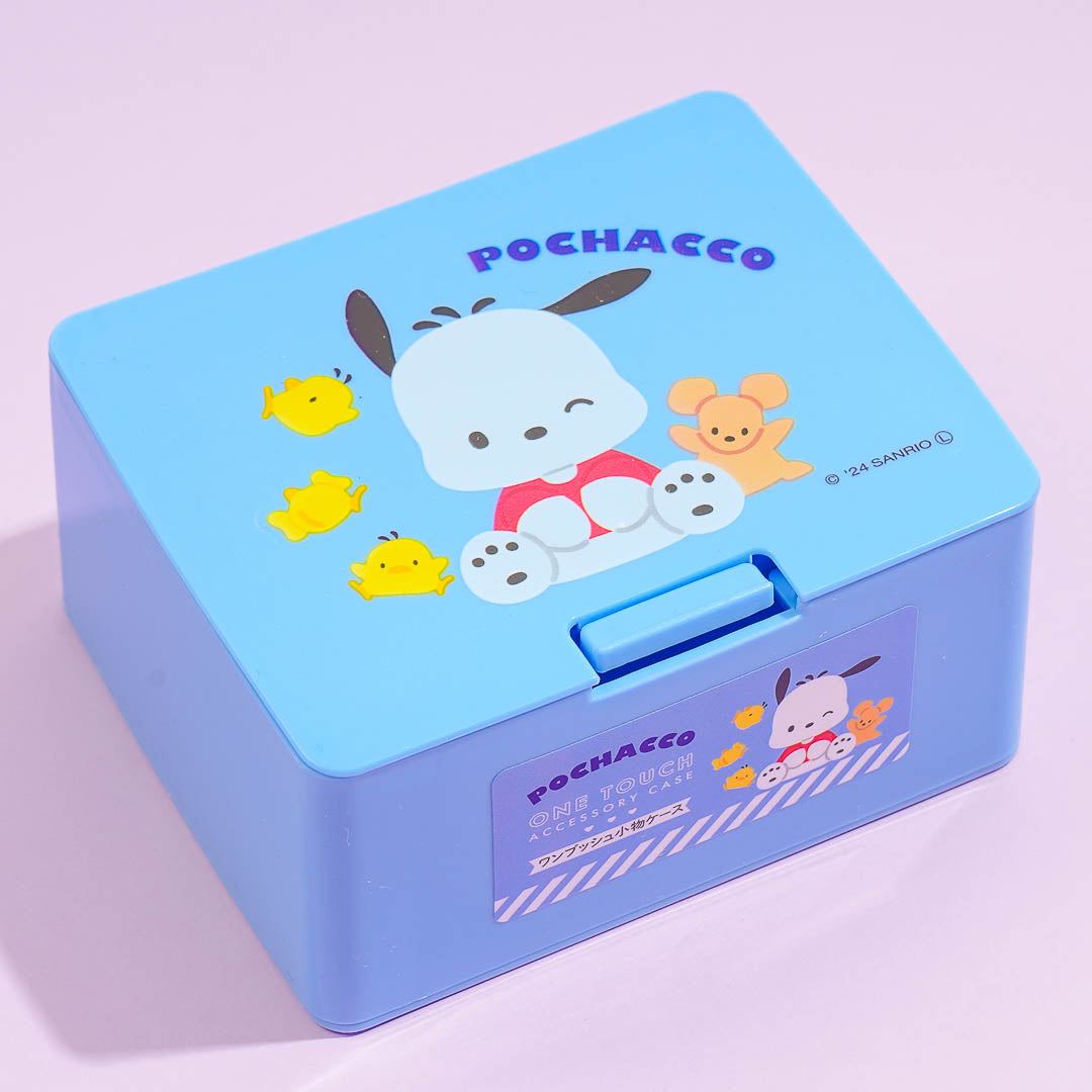 This kawaii accessory case is decorated with a print of Pochacco hanging out with his buddies. Use it to store your trinkets and knick-knacks! It has a one-touch open lock that makes it super easy to use.