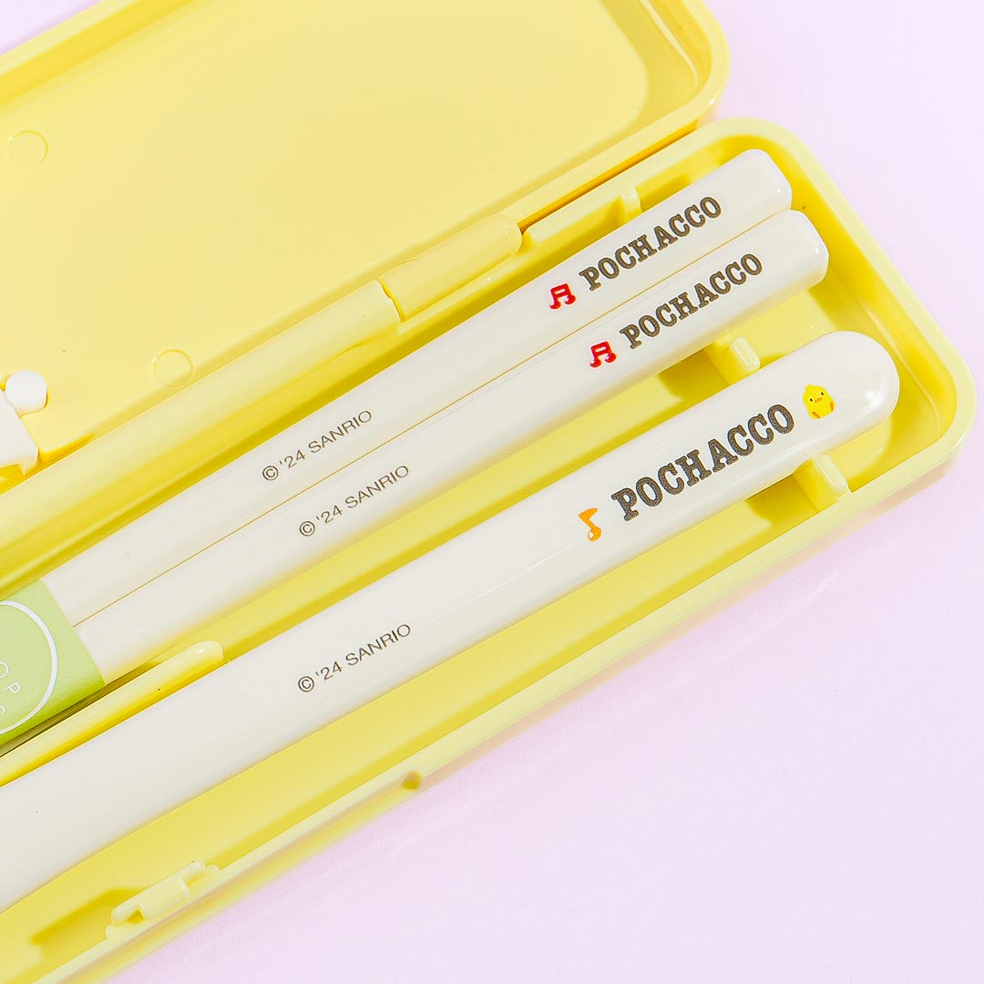 This super cute spoon and chopsticks set comes in a case with a flip-top lid and has prints of a happy Pochacco! It also contains silver ion properties that prevent bacterial growth. Use the kit whenever you want to eat your favorite wonton noodle soup!
