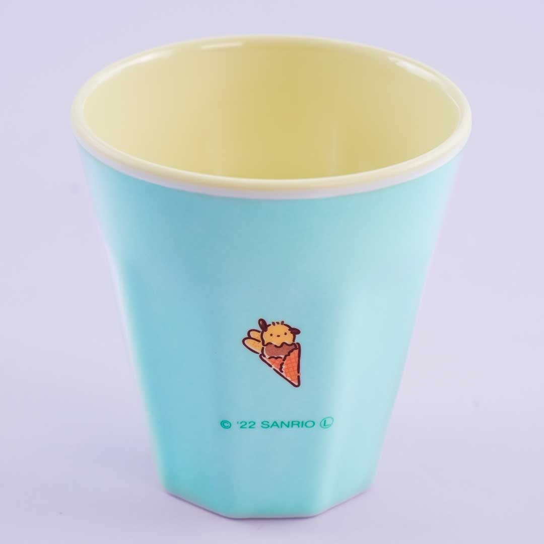 This kawaii cup is illustrated with a retro print of Pochacco. There's also a text printed that says "Pochacco Retro Collection" in Japanese. Use it to take a sip of your favorite refreshing beverage! It's made of durable melamine material.