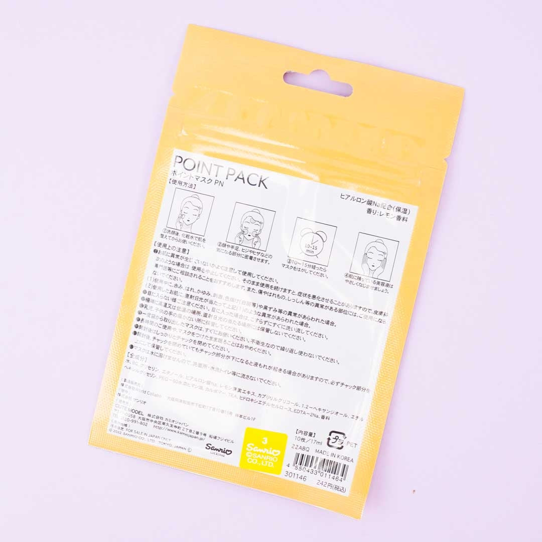 Add a dose of cuteness to your skincare routine with this resealable bag of face packs! These lemon-scented face packs showcase Pompompurin. Each face pack piece contains moisturizing hyaluronic acid.
